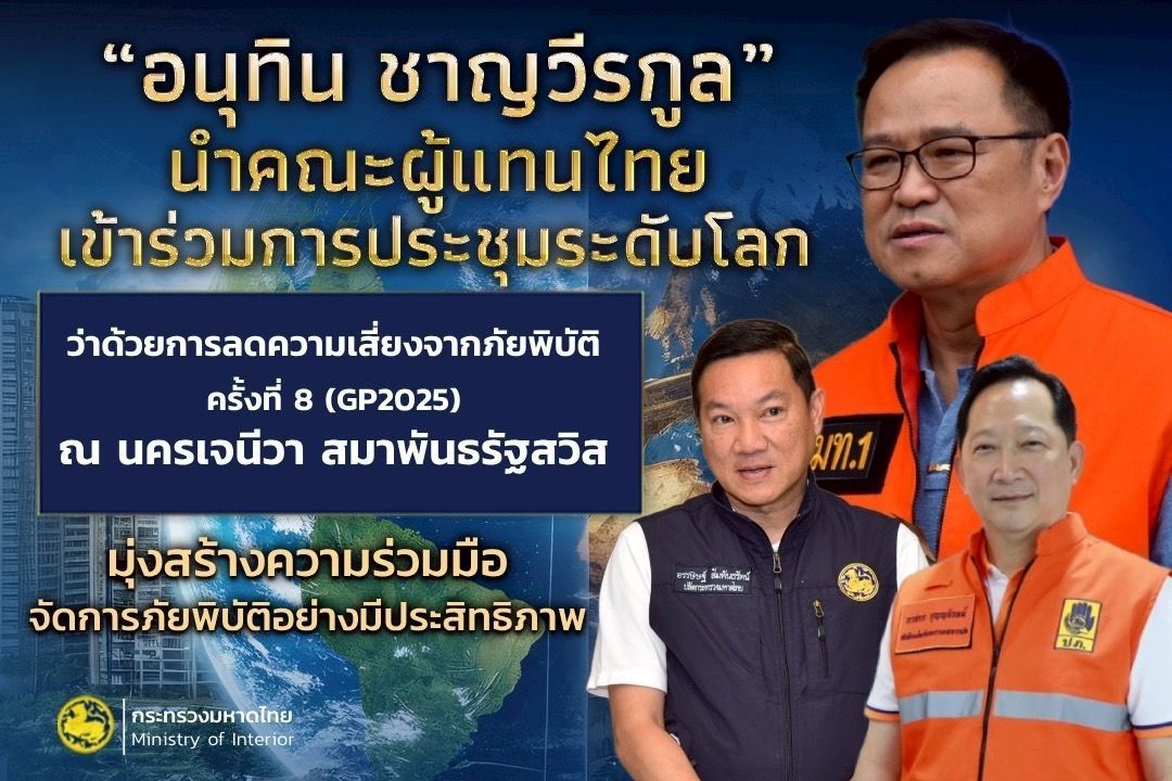 น.ส.ไตรศุลี ไตรสรณกุล เลขานุการ รมว.มหาดไทยและโฆษกกระทรวงมหาดไทย กล่าวว่า ระหว่างวันที่ 3-6 มิ.ย. 68 นายอนุทิน ชาญวีรกูล รองนายกรัฐมนตรีและ รมว.มหาดไทย จะนำคณะผู้แทนจากประเทศไทย อาทิ นายอรรษิษฐ์ สัมพันธรัตน์ ปลัดกระทรวงมหาดไทยในฐานะรองผู้บัญชาการป้องกันและบรรเทาสาธารณภัยแห่งชาติ และนายภาสกร บุญญลักษม์ อธิบดีกรมป้องกันและบรรเทาสาธารณภัย เข้าร่วมการประชุมระดับโลกว่าด้วยการลดความเสี่ยงจากภัยพิบัติ ครั้งที่ 8 : Global Platform for Disaster Risk Reduction (GP2025) ณ นครเจนีวา สมาพันธรัฐสวิส