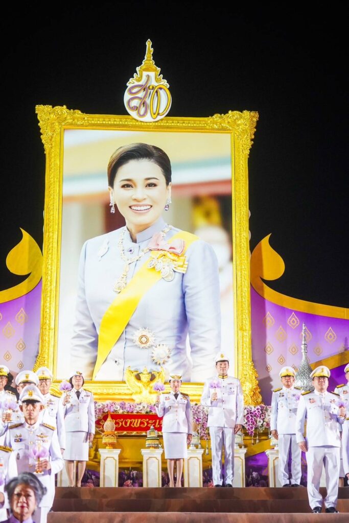 นายจิรายุ ห่วงทรัพย์ โฆษกประจำสำนักนายกรัฐมนตรี เปิดเผยว่า เมื่อนายกรัฐมนตรีและคู่สมรสเดินทางถึงพิธีท้องสนามหลวง ขึ้นสู่เวที นายกรัฐมนตรี ผู้แทนประธานรัฐสภา ประธานศาลฎีกา ทำวันทยหัตถ์หน้าพระฉายาลักษณ์สมเด็จพระนางเจ้าฯ พระบรมราชินี แล้ววางพุ่มทอง พุ่มเงิน จากนั้นนายกรัฐมนตรีถวายธูปเทียนแพ จุดเทียนถวายพระพรชัยมงคล ต่อจากนั้นนายกรัฐมนตรี กล่าวกราบบังคมทูลถวายพระพรชัยมงคล และกล่าวนำถวายพระพรชัยมงคลหน้าพระฉายาลักษณ์ ความว่า