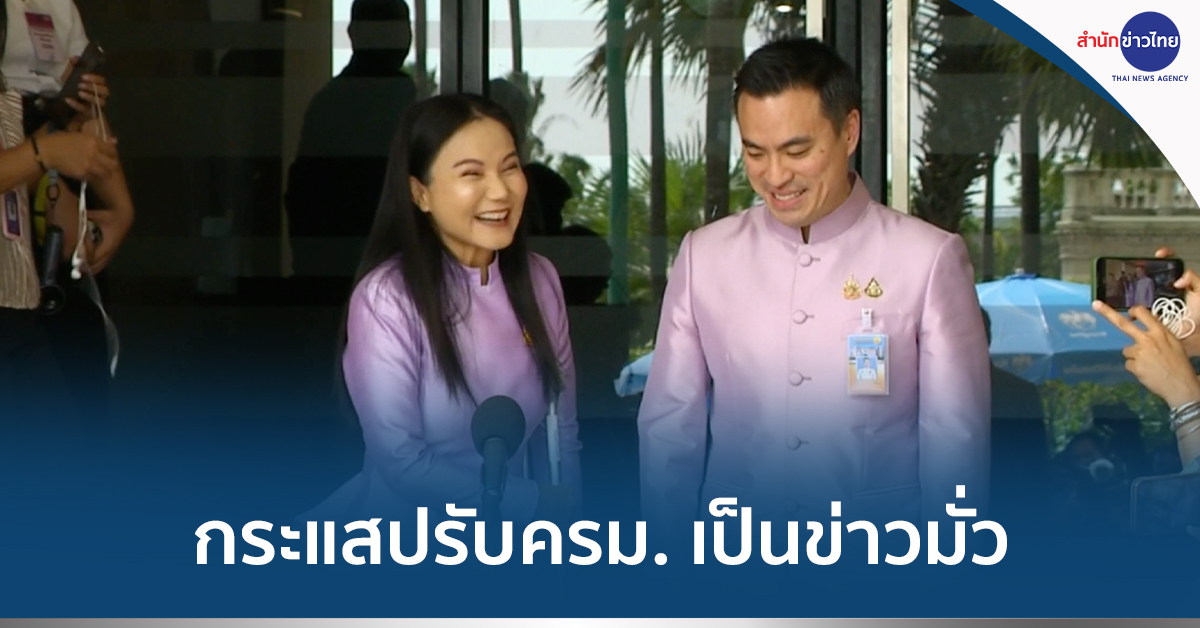 ทำเนียบ 4 มิ.ย.- “นฤมล” บอกกระแสปรับครม. เปลี่ยนตัวรมว.เกษตรฯ โยกนั่ง รมช.คลัง – เพิ่มเก้าอี้ มท.4 เป็นข่าวมั่ว เผยนายกฯ ยังไม่ส่งสัญญาณ ขอว่ากันตามที่ “ธรรมนัส” เจรจา