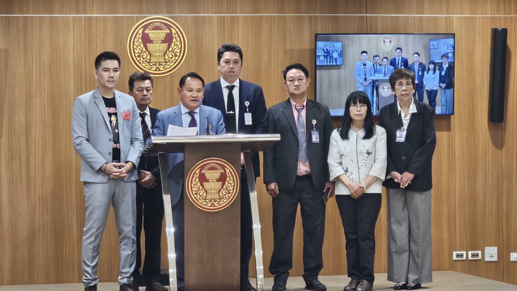 นายฉลาด ขามช่วง สส.ร้อยเอ็ด พรรคเพื่อไทย ในฐานะประธานคณะกรรมาธิการการป้องกันและปราบปรามการทุจริตประพฤติมิชอบ สภาผู้แทนราษฎร รับหนังสือจากนายภัทรพงศ์ ศุภักษร หรือ ทนายอั๋น บุรีรัมย์ เพื่อขอให้ตรวจสอบสำนักงานตำรวจแห่งชาติในกรณีเครื่องบินตก