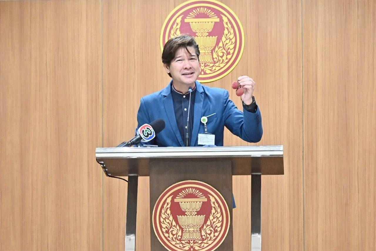 รัฐสภา 6 มิ.ย. – “สส.กันตพงศ์” ขนลิ้นจี่ 10 โลฟ้องสื่อ ฉะ “ก.เกษตรฯ-พาณิชย์” ปล่อยราคาตกฮวบจาก 100 บาท เหลือ 18 บาท ภายในไม่ถึงสัปดาห์ อัด “ย่ำอยู่กับที่-ย่ำแย่”