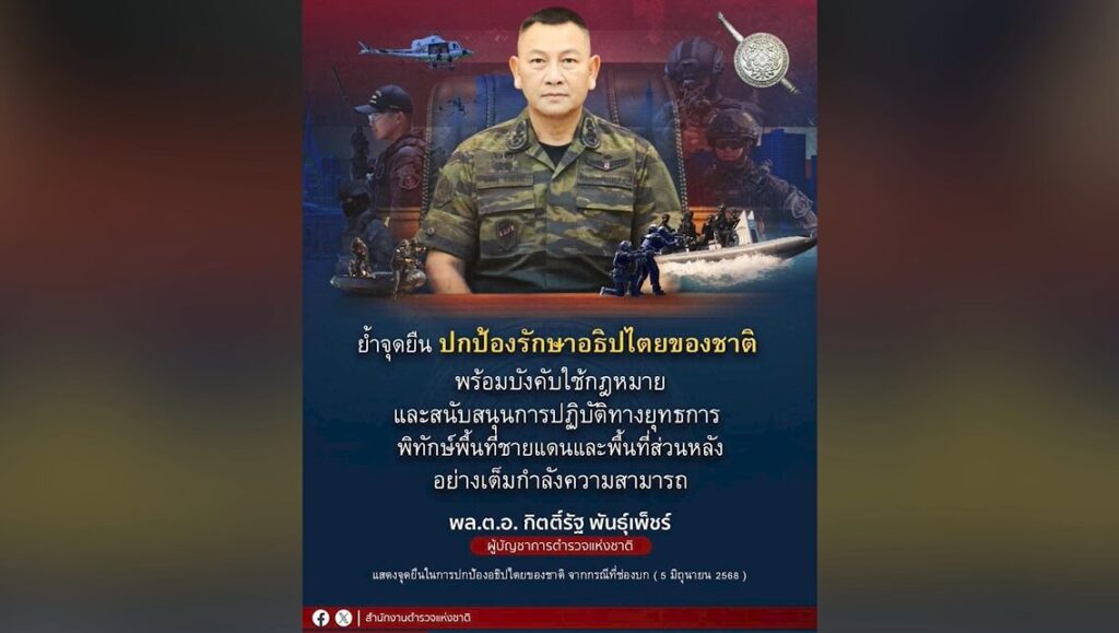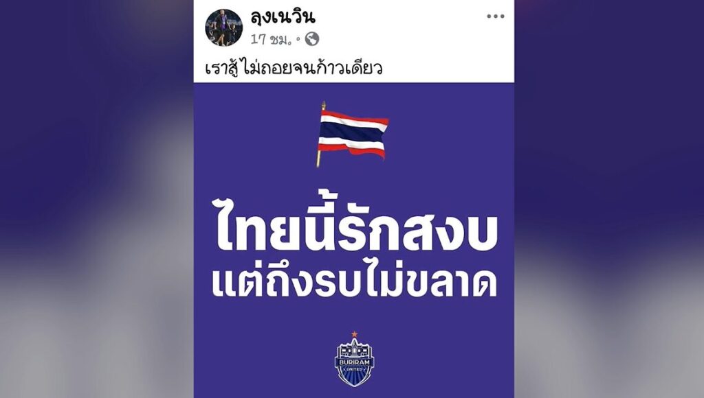 6 มิ.ย. – ท่ามกลางสถานการณ์ชายแดนตึงเครียด มีการส่งกำลังใจให้ผู้ทำหน้าที่ปกป้องประเทศชาติ ด้วยแฮชแท็ก #ไทยนี้รักสงบแต่ถึงรบไม่ขลาด ที่กำลังร้อนแรงในโลกโซเซียลขณะนี้