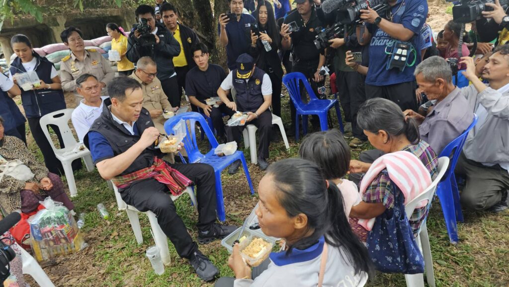 นายอนุทิน ชาญวีรกูล รองนายกรัฐมนตรีและรัฐมนตรีว่าการกระทรวงมหาดไทย นั่งตากฝนตั้งวงกินข้าวกล่องกับชาวบ้านที่วัดบ้านค้อ ตำบลโดมประดิษฐ์ อำเภอน้ำยืน จังหวัดอุบลราชธานี หลังจากพูดคุยสอบถามความรู้สึกต่อสถานการณ์ จะให้ความมั่นใจเพื่อไม่ให้เกิดความกลัว นอกจากนี้ยังได้ตรวจดูความพร้อมของบังเกอร์หลบภัย และเข้าไปนั่งในหลุมหลบภัยด้วย