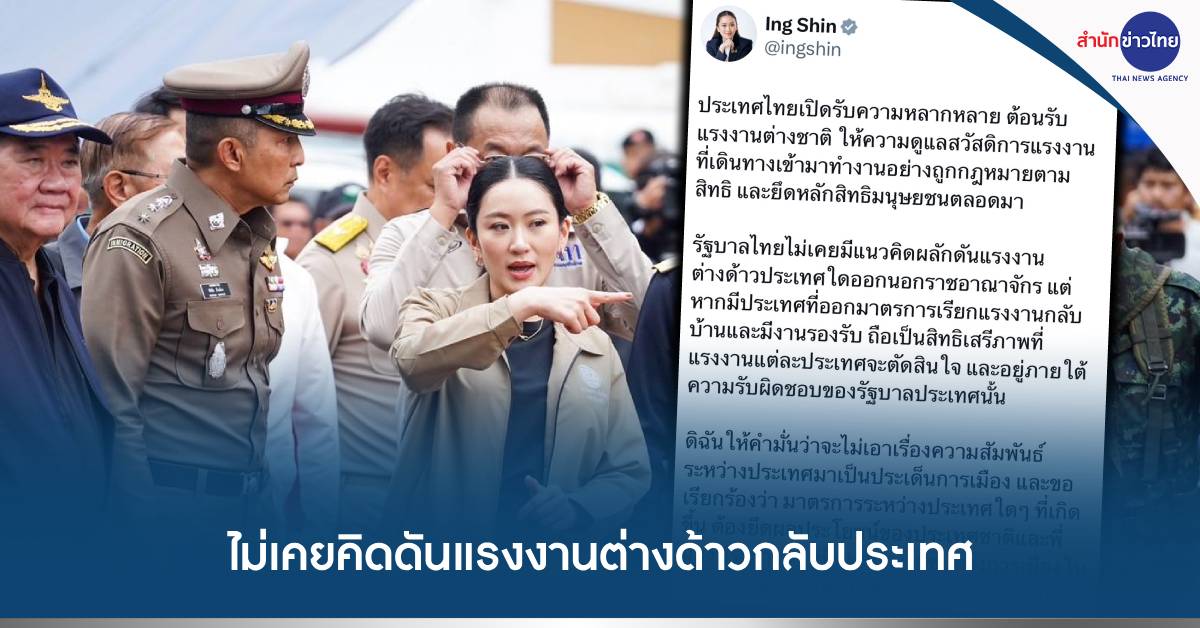 น.ส.แพทองธาร ชินวัตร นายกรัฐมนตรี โพสต์ข้อความผ่านโซเชียลมีเดีย ระบุว่า ประเทศไทยเปิดรับความหลากหลาย ต้อนรับแรงงานต่างชาติ ให้ความดูแลสวัสดิการแรงงานที่เดินทางเข้ามาทำงานอย่างถูกกฎหมายตามสิทธิ และยึดหลักสิทธิมนุษยชนตลอดมา