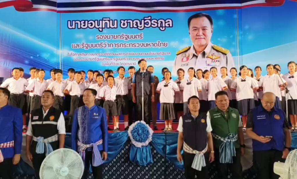 อุดรธานี 15 มิ.ย.-“อนุทิน” นำทีมมหาดไทย ปลุกใจนักเรียน ร่วมร้องบทเพลง “สยามานุสสติ” ในการตรวจราชการพื้นที่อ.เพ็ญ จ.อุดรธานี ด้วยความฮึกเหิม
