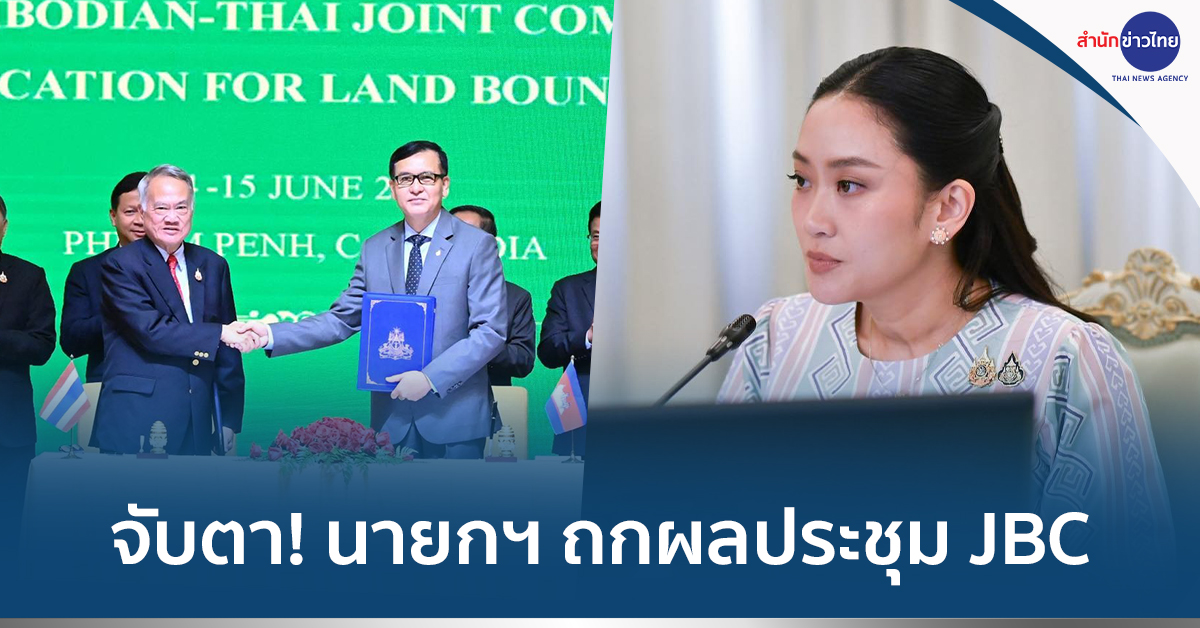 ผู้สื่อข่าวรายงานว่า วันนี้ (16 มิ.ย.) เวลา 10.00 น. มีรายงานว่า น.ส.แพทองธาร ชินวัตร นายกรัฐมนตรี จะเรียกประชุมหน่วยงานที่เกี่ยวข้อง หารือผลการประชุมคณะกรรมาธิการเขตแดนร่วม (JBC) ไทย-กัมพูชา ครั้งที่ 6 ที่จัดขึ้นระหว่างวันที่ 14-15 มิถุนายน 2568 ณ กรุงพนมเปญ ราชอาณาจักรกัมพูชา