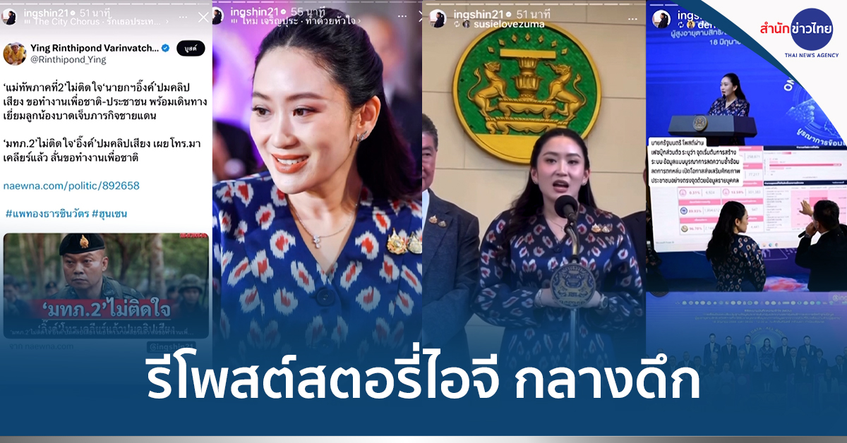 พบว่าสตอรี่อินสตราแกรมของ นายกรัฐมนตรี ยังคงมีการเคลื่อนไหวผ่านการรีโพสต์สตอรี่ ที่มีคนโพสต์และแท็ก โดยเป็นภาพระหว่างสื่อมวลชนตามสัมภาษณ์นายกรัฐมนตรี เมื่อช่วงเช้าที่ผ่านมา และเป็นโพสต์รูปภาพของนายกรัฐมนตรี พร้อมใส่เพลง “ทำด้วยหัวใจ” โดยไม่มีการใส่แคปชั่น หรือระบุข้อความใดใดในภาพ รวมถึงคลิปที่นายกรัฐมนตรีได้มีการแถลงข่าวต่อสื่อมวลชนถึงเสียงสนทนากับสมเด็จฮุนเซน ด้วย -สำนักข่าวไทย