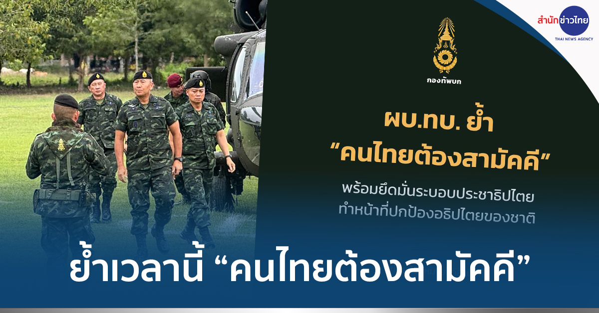 ทั้งนี้ ผู้บัญชาการทหารบกได้เน้นย้ำว่า หากพิจารณาอย่างรอบด้านแล้ว สิ่งที่สำคัญที่สุดในห้วงเวลานี้คือ “คนไทยต้องสามัคคี” ร่วมกันปกป้องอธิปไตยจากผู้ไม่หวังดี โดยยึดถือผลประโยชน์ของชาติเป็นสำคัญ-313 .-สำนักข่าวไทย
