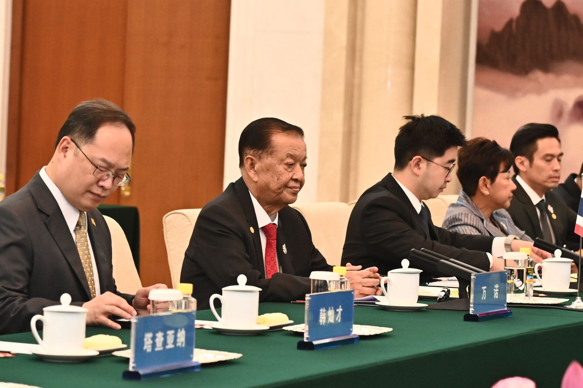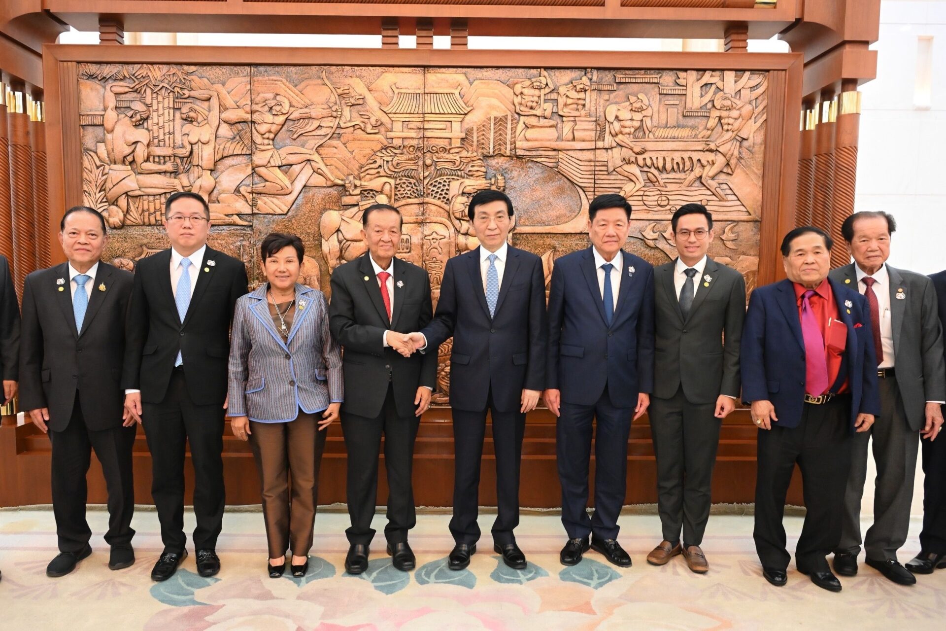 จากนั้นประธานรัฐสภาได้เดินทางไปยังมหาศาลาประชาชน เพื่อเข้าเยี่ยมคารวะนายหวัง ฮู่หนิง ประธานสภาที่ปรึกษาทางการเมืองจีน โอกาสนี้ได้ร่วมหารือกระชับความสัมพันธ์ระหว่างไทยและจีน