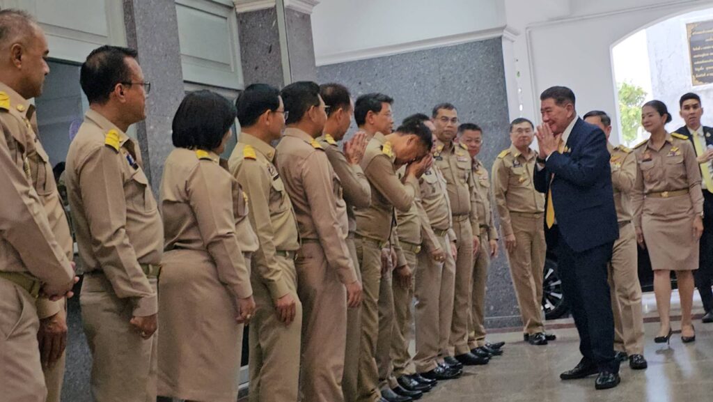 กระทรวงมหาดไทย 23 มิ.ย.- “ภูมิธรรม” เขิน ข้าราชการมหาดไทยต้อนรับเหมือนเป็น มท.1 ตบแถวรอรับตั้งแต่ลงรถถึงหน้าบันได ยัน มาประชุมกำกับดูแลไม่ได้มาคุมกระทรวง ดีใจได้กลับบ้าน บอก ผมอยู่ตั้งแต่ปี 2544 เป็นสิงห์ดำรุ่นที่ 25