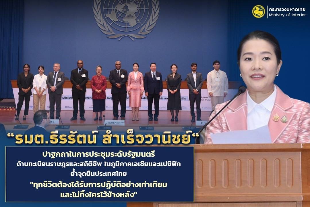 น.ส.ธีรรัตน์ กล่าวว่า รัฐบาลไทยและกระทรวงมหาดไทย ตระหนักถึงความสำคัญในการส่งเสริมพัฒนาคุณภาพชีวิตของประชาชนทุกระดับอย่างยั่งยืน ซึ่งระบบการทะเบียนราษฎรและสถิติชีพ หรือ CRVS เป็นรากฐานสำคัญเป็นเครื่องยืนยัน “สิทธิในการมีตัวตน” ของประชาชนทุกคนในสังคม ช่วยสร้างโอกาสในการเข้าถึงบริการสุขภาพและการศึกษา และการพัฒนาระบบดิจิทัลเพื่อลดความเหลื่อมล้ำในชุมชนห่างไกล