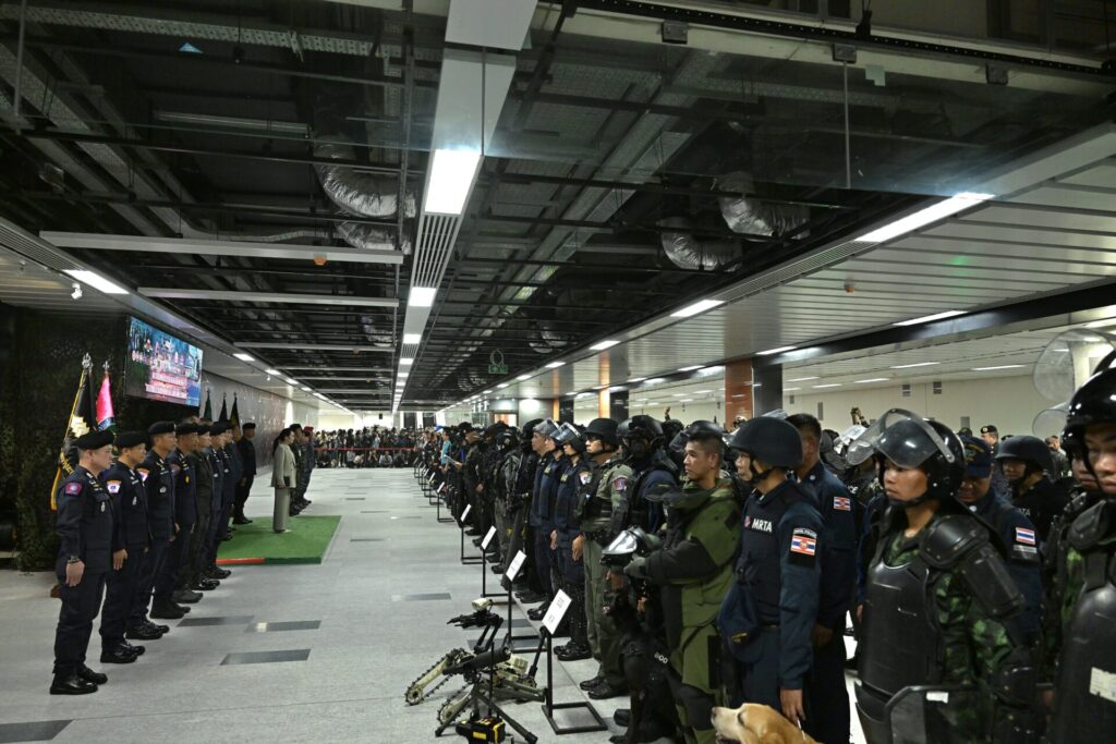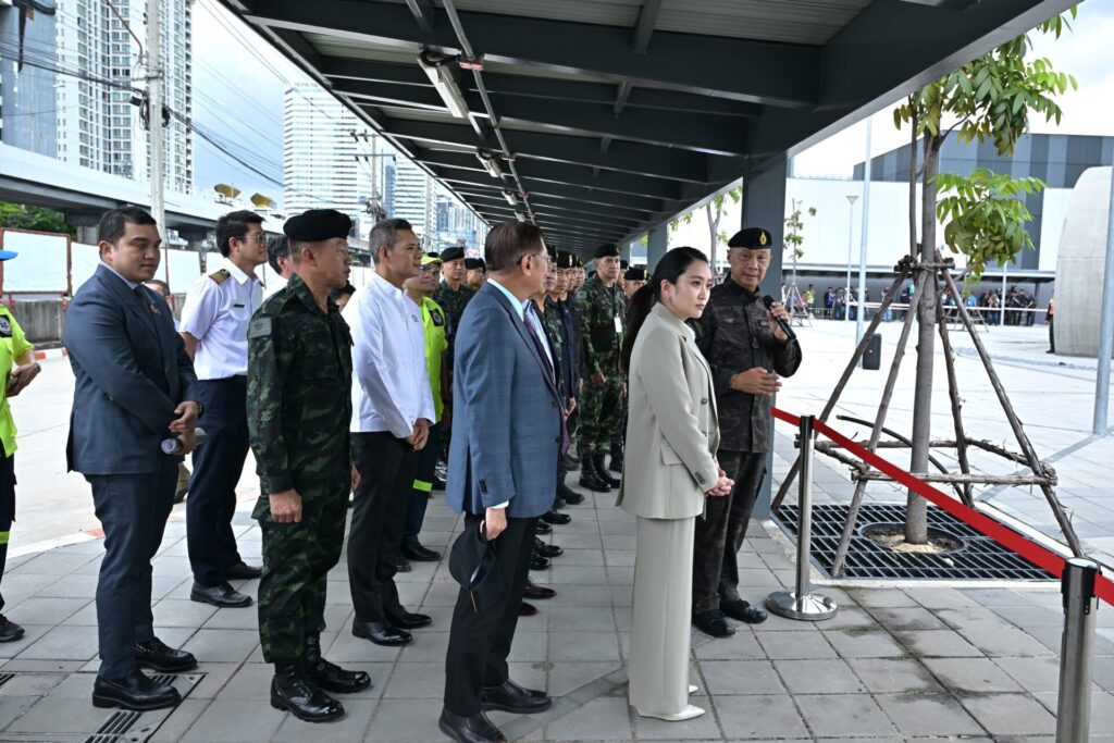 นางสาวแพทองธาร ชินวัตร นายกรัฐมนตรี ตรวจเยี่ยมการฝึกทดสอบแผนเผชิญเหตุ “การตอบโต้ภัยคุกคามพื้นที่ส่วนหลัง” ณ พื้นที่สถานีรถไฟฟ้าใต้ดินสายสีส้มตะวันออก OR14 การรถไฟฟ้าขนส่งมวลชนแห่งประเทศไทย (รฟม.) เขตห้วยขวาง กรุงเทพฯ โดยมีนายวิทยา พันธุ์มงคล รองผู้ว่าการ ปฏิบัติการรักษาการผู้ว่าการ รฟม. พลเอกไพบูลย์ วรวรรณปรีชา รองเสนาธิการกองบัญชาการกองทัพไทย พลโท อมฤต บุญสุยา แม่ทัพภาคที่ 1 พล.ต.ท.สยาม บุญสม ผู้บัญชาการตำรวจนครบาล และพลโท สุเมธ พรหมตรุษ ผู้บัญชาการศูนย์ปฏิบัติการต่อต้านการก่อการร้ายสากล เข้าร่วม