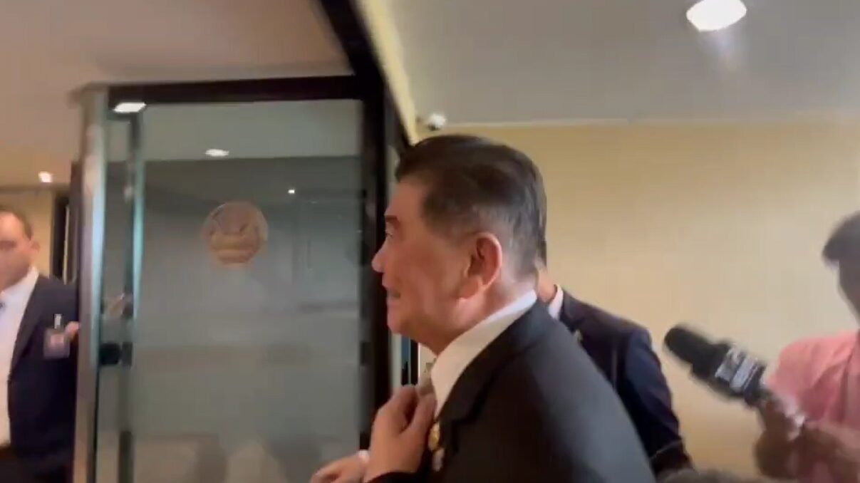 ผู้สื่อข่าวพยายามถามต่อว่า มองว่าเรื่องดังกล่าวเป็นนิติสงครามหรือไม่ นายภูมิธรรม ไม่ได้ตอบคำถาม แต่ได้เดินเข้าลิฟต์เพื่อขึ้นตึกบัญชาการทันที.-312.-สำนักข่าวไทย
