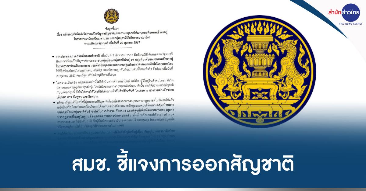 หลังจากเกิดความเข้าใจผิดถึงการให้สัญชาติกับบุคคลต่างด้าวที่เกิดในประเทศไทย สภาความมั่นคงแห่งชาติ หรือ สมช.ออกหนังสือ เรื่อง หลักเกณฑ์เพื่อเร่งรัดการแก้ไขปัญหาสัญชาติและสถานะบุคคลให้แก่บุคคลที่อพยพเข้ามาอยู่ในราชอาณาจักรเป็นเวลานาน และกลุ่มบุตรที่เกิดในราอาณาจักร ตามมติคณะรัฐมนตรี เมื่อวันที่ 29 ตุลาคม 2567