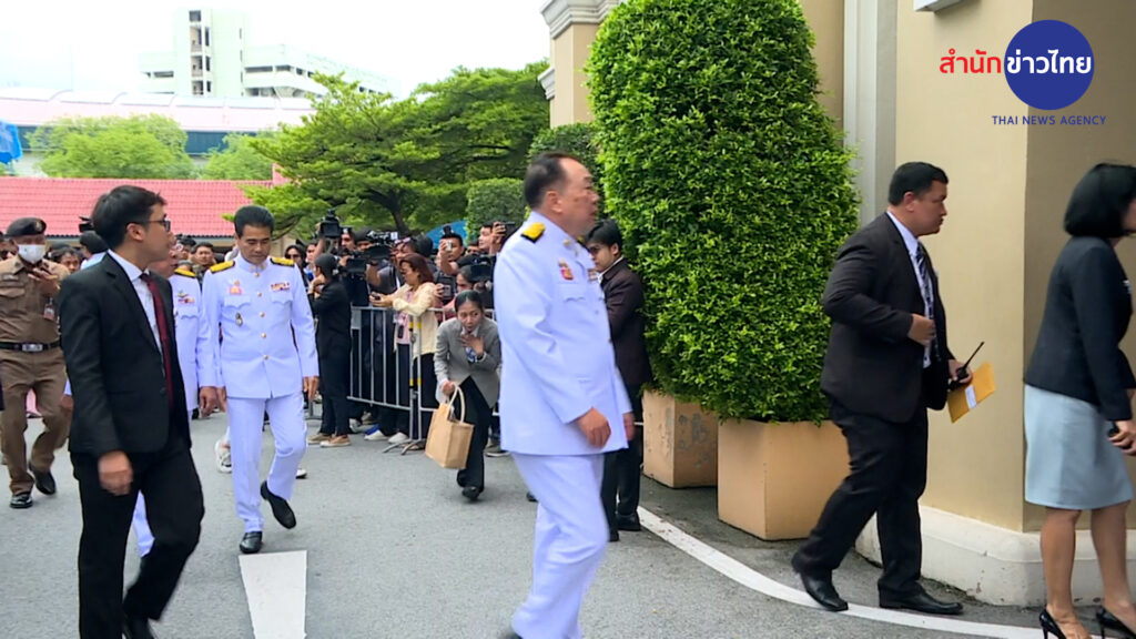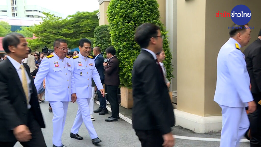 ในเวลา 11.27 น. และเดินขึ้นตึกบัญชาการ 1 เตรียมประชุมคณะรัฐมนตรีนัดพิเศษในเวลา 14.00 น. เพื่อแบ่งงานรองนายกรัฐมนตรีและรัฐมนตรี
