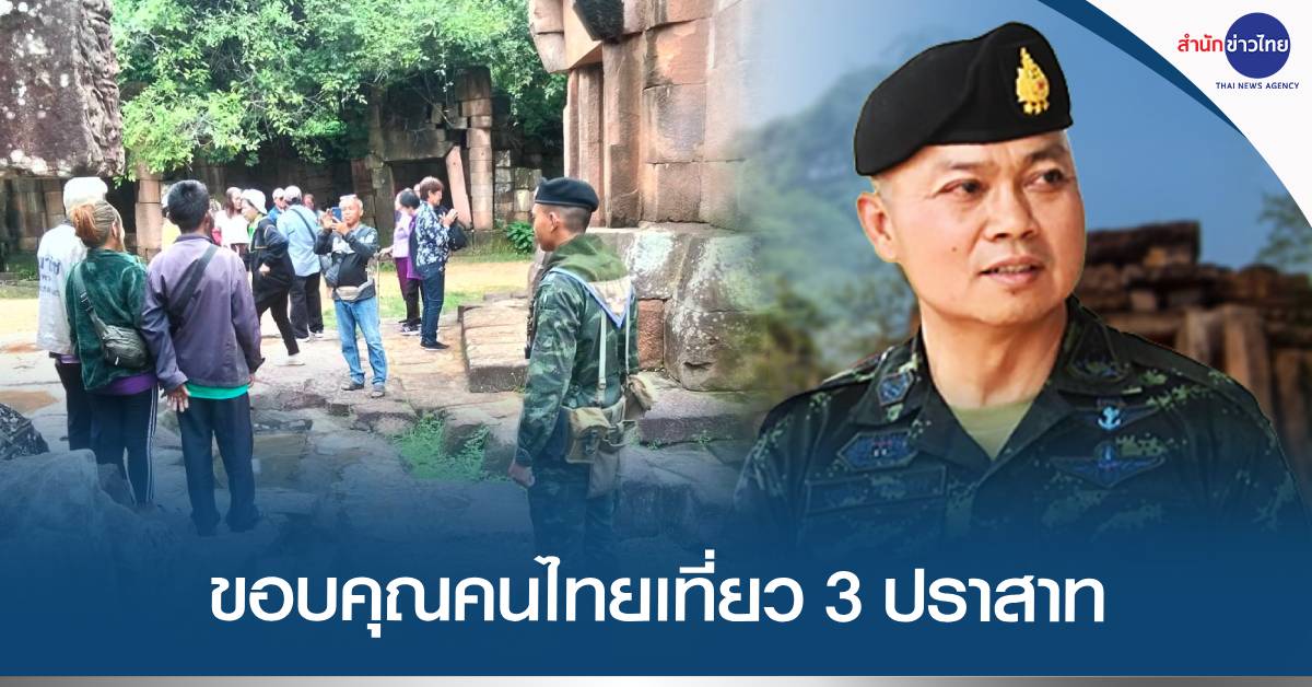 “ผมต้องขอขอบคุณพี่น้องประชาชนทุกๆ ท่าน ที่เดินทางมาเยี่ยมชมโบราณสถานของไทย ที่อยู่คู่กับแผ่นดินไทยมาอย่างยาวนาน นอกจากจะมาเยี่ยมชมแล้ว ยังนำสิ่งของมามอบให้กับเจ้าหน้าที่ทหาร ซึ่งเป็นลูกหลานของพวกท่าน เป็นขวัญและกำลังใจในการปฏิบัติหน้าที่ปกป้องอธิปไตย พร้อมทั้งยังได้อุดหนุนสินค้าพื้นบ้าน เพื่อเป็นการกระตุ้นเศรษฐกิจในท้องถิ่น ผมขอเชิญชวนพี่น้องประชาชนในช่วงวันหยุด หากท่านยังไม่มีสถานที่ที่จะไปเที่ยวที่ไหน ก็เรียนเชิญมาชมโบราณสถานทั้ง 3 ปราสาทนี้ ได้ทุกวัน“ พล.ท.บุญสิน กล่าว. – สำนักข่าวไทย