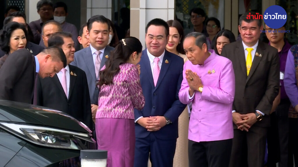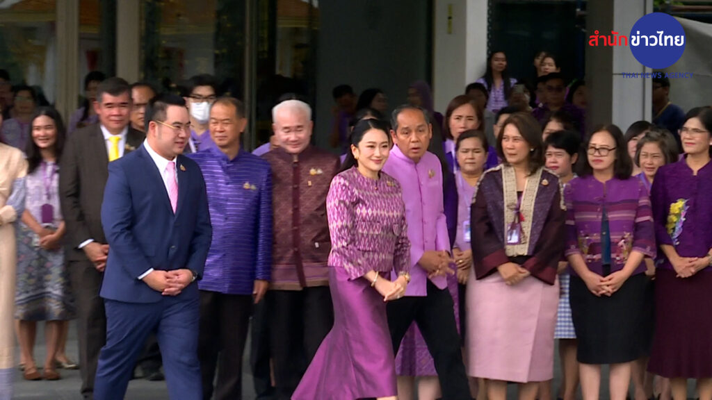 นางสาวแพทองธาร ชินวัตร นายกรัฐมนตรี และรัฐมนตรีว่าการกระทรวงวัฒนธรรม เดินทางเข้ากระทรวงวัฒนธรรมเป็นวันแรก โดยสวมชุดผ้าไทยสีม่วง ซึ่งเป็นสีประจำกระทรวงวัฒนธรรม โดยเดินทางมาถึงในเวลา 09.09 น. โดยมีนายสุริยะ จึงรุ่งเรืองกิจ รองนายกรัฐมนตรีและรัฐมนตรีว่าการกระทรวงคมนาคม, นางสาวสุดาวรรณ หวังศุภกิจโกศล รัฐมนตรีว่าการกระทรวงการอุดมศึกษา วิทยาศาสตร์วิจัยและนวัตกรรม, นางสาวลิณธิภรณ์ วริณวัชรโรจน์ รัฐมนตรีช่วยว่าการกระทรวงศึกษาธิการ, นายพลภูมิ วิภัติภูมิประเทศ กรรมการผู้ช่วยรัฐมนตรีว่าการกระทรวงวัฒนธรรม, นายประสพ เรียงเงิน ปลัดกระทรวงวัฒนธรรม ผู้บริหารและข้าราชการกระทรวงวัฒนธรรม รวมถึงมี สส. พรรคเพื่อไทย มารอต้อนรับ ซึ่งทันทีที่มาถึงนายกรัฐมนตรี มีสีหน้าแจ่มใส ยิ้มและทักทายคนที่มารอต้อนรับ