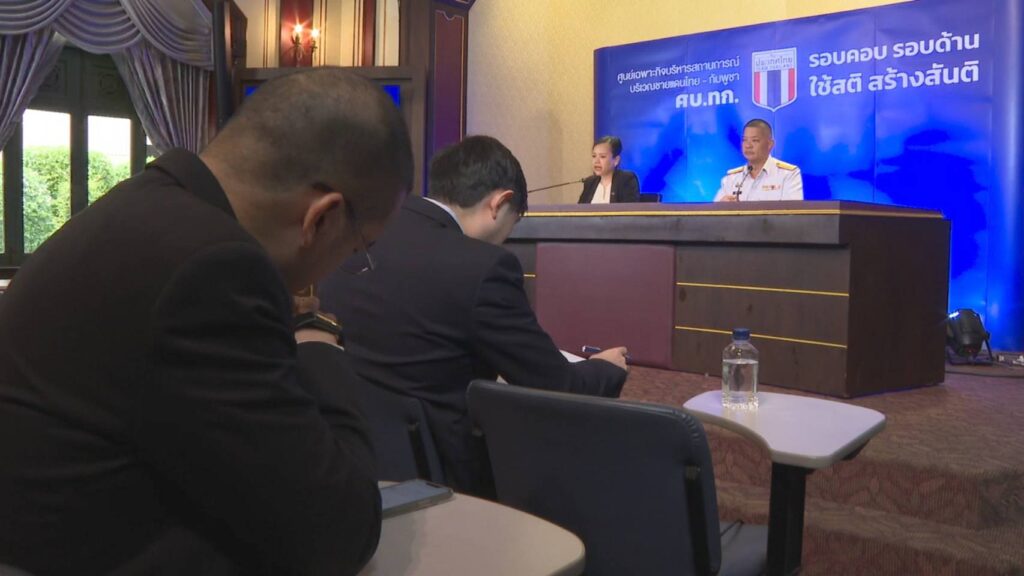 ศูนย์เฉพาะกิจบริหารสถานการณ์บริเวณชายแดนไทย-กัมพูชา (ศบ.ทก.)โดยนางมาระตี นะลิตา อันดาโม รองอธิบดีกรมสารนิเทศและรองโฆษกกระทรวงการต่างประเทศ และ พล.ร.ต. สุรสันต์ คงสิริ โฆษก ศบ.ทก.ด้านความมั่นคง