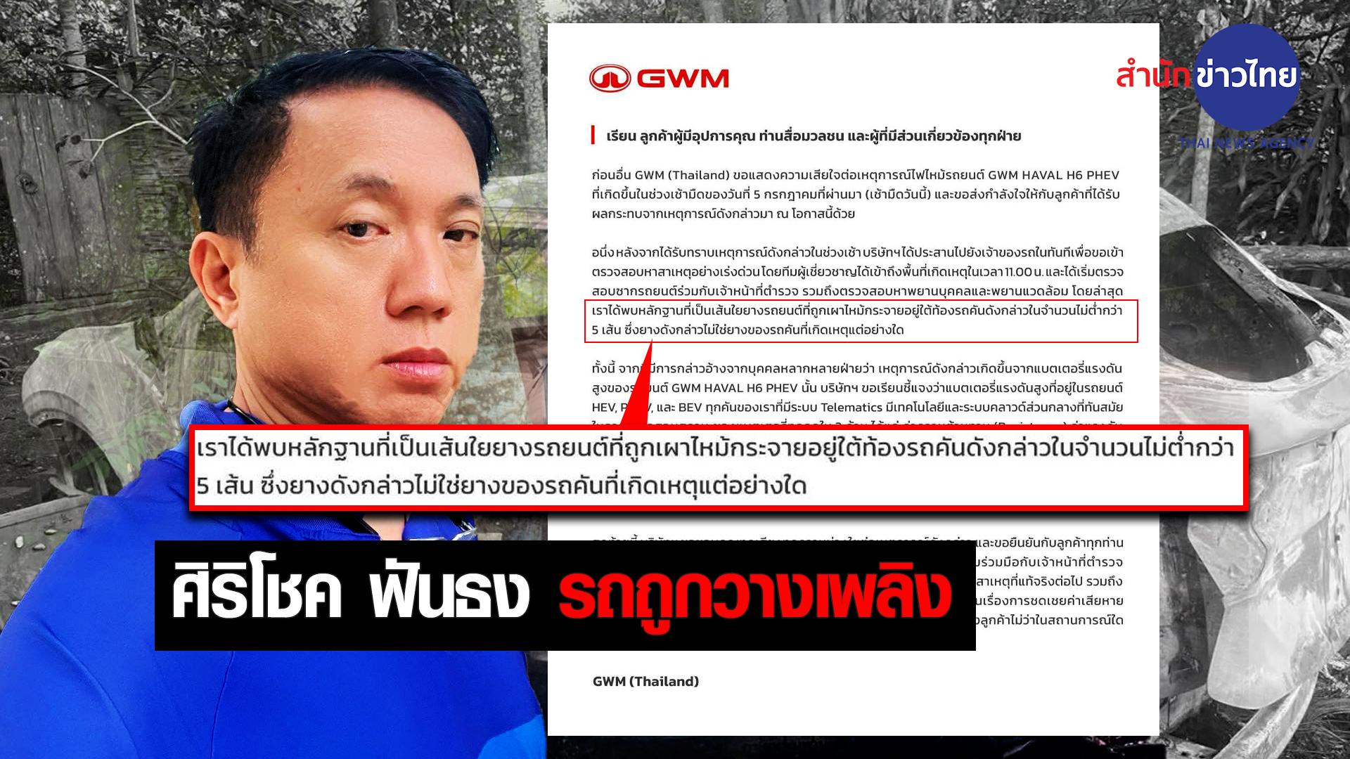 นอกจากนี้ บริษัท GWM (Thailand) ได้ออกหนังสือชี้แจง พร้อมแสดงความเสียใจต่อเหตุการณ์ไฟไหม้รถยนต์ GWM HAVAL H6 PHEV ที่เกิดขึ้นในช่วงเช้ามืดของวันที่ 5 กรกฎาคมที่ผ่านมา และขอส่งกำลังใจให้กับลูกค้าที่ได้รับผลกระทบจากเหตุการณ์ดังกล่าวมา หลังจากได้รับทราบเหตุการณ์ดังกล่าวในช่วงเช้า บริษัทฯ ได้ประสานไปยังเจ้าของรถในทันทีเพื่อขอเข้าตรวจสอบหาสาเหตุอย่างเร่งด่วน โดยทีมผู้เชี่ยวชาญได้เข้าถึงพื้นที่เกิดเหตุในเวลา 11.00 น. และได้เริ่มตรวจสอบซากรถยนต์ร่วมกับเจ้าหน้าที่ตำรวจ รวมถึงตรวจสอบหาพยานบุคคลและพยานแวดล้อม โดยล่าสุดได้พบหลักฐานที่เป็นเส้นใยยางรถยนต์ที่ถูกเผาไหม้กระจายอยู่ใต้ท้องรถคันดังกล่าวในจำนวนไม่ต่ำกว่า 5 เส้น ซึ่งยางดังกล่าวไม่ใช่ยางของรถคันที่เกิดเหตุแต่อย่างใด