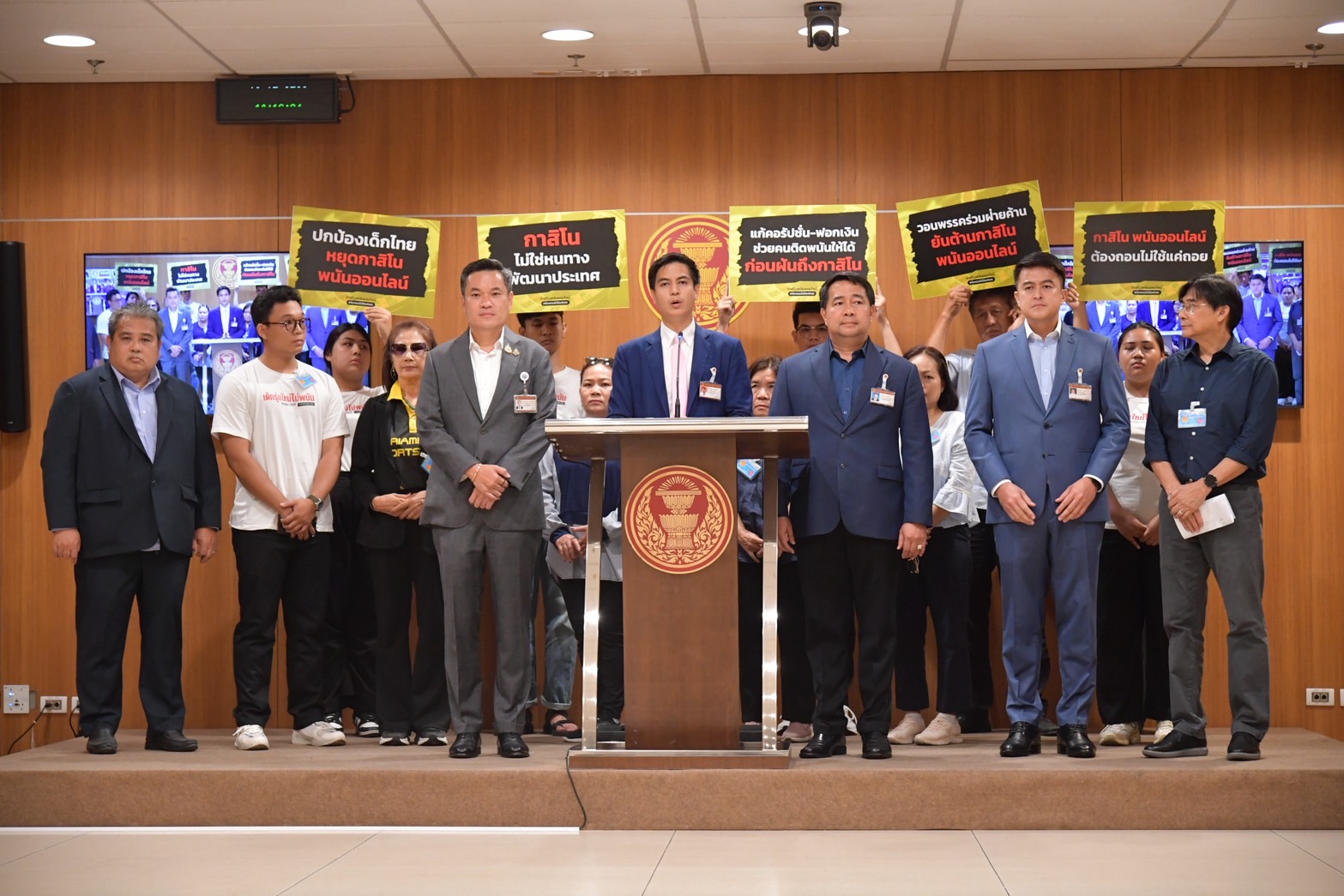 นายธนากร กล่าวว่า ตามที่ที่ประชุมพรรคร่วมฝ่ายด้าน มีมติจะเดินหน้ากลไกในสภาทุกอย่าง เพื่อกดดันให้รัฐบาลถอนร่างพ.ร.บ.ฯ ออกไป โดยมีเงื่อนไขและให้ความเชื่อมั่นว่าจะไม่มีการเสนอร่างนี้กลับเข้ามาอีก ภาคประชาชน ประกอบด้วยเครือข่ายเด็กและเยาวชน เครือข่ายครอบครัว เครือข่ายพ่อแม่ผู้ปกครอง เครือข่ายชุมชน เครือข่ายแพทย์ และบุคลากรสาธารณสุข เครือข่ายศาสนาเครือข่ายครูอาจารย์และนักวิชาการ เครือข่ายนักกฎหมาย เครือข่ายสื่อสารมวลชน และเครือข่ายภาคประชา สังคม เห็นด้วยกับมติดังกล่าวและขอสนับสนุนให้พรรคร่วมฝ่ายค้านใช้ทุกสรรพกำลังให้ร่างกฎหมายนี้ถูกถอนออกไปจากรัฐสภา ด้วยเหตุผล 1.การหวังจะหารายได้เข้ารัฐจากกิจการพนันจะก่อให้เกิดผลได้ไม่คุ้มเสีย มีผู้ได้ประโยชน์เพียงส่วนน้อยในขณะที่ผลเสียจะตกกับสังคม เป็นนโยบายที่ทำลายมากกว่าสร้างสรรค์ ซึ่งขัดกับหลักการพัฒนาอย่างยั่งยืน 2.การคิดว่าจะใช้การพนันบนดินแก้ปัญหาการพนันใต้ดิน เป็นแนวคิดที่หลงทางและจะกลับกลายเป็นการเพิ่มการขยายตัวของการพนันอย่างชอบธรรมโดยนโยบายรัฐ 3.การหลงในวาทกรรม “การพนันอย่างรับผิดชอบ” คือการหลงเหลี่ยมคำลวงของธุรกิจพนัน ที่มุ่งผลักภาระรับผิดชอบมาที่ผู้เล่นพนัน และพยายามหลีกเลี่ยงความรับผิดชอบของธุรกิจ และ 4.การจะลดปัญหาการพนั่นในสังคมต้องทำทั้งระบบ ทั้งระบบปราบปรามที่โปร่งใส และมีประสิทธิภาพ
