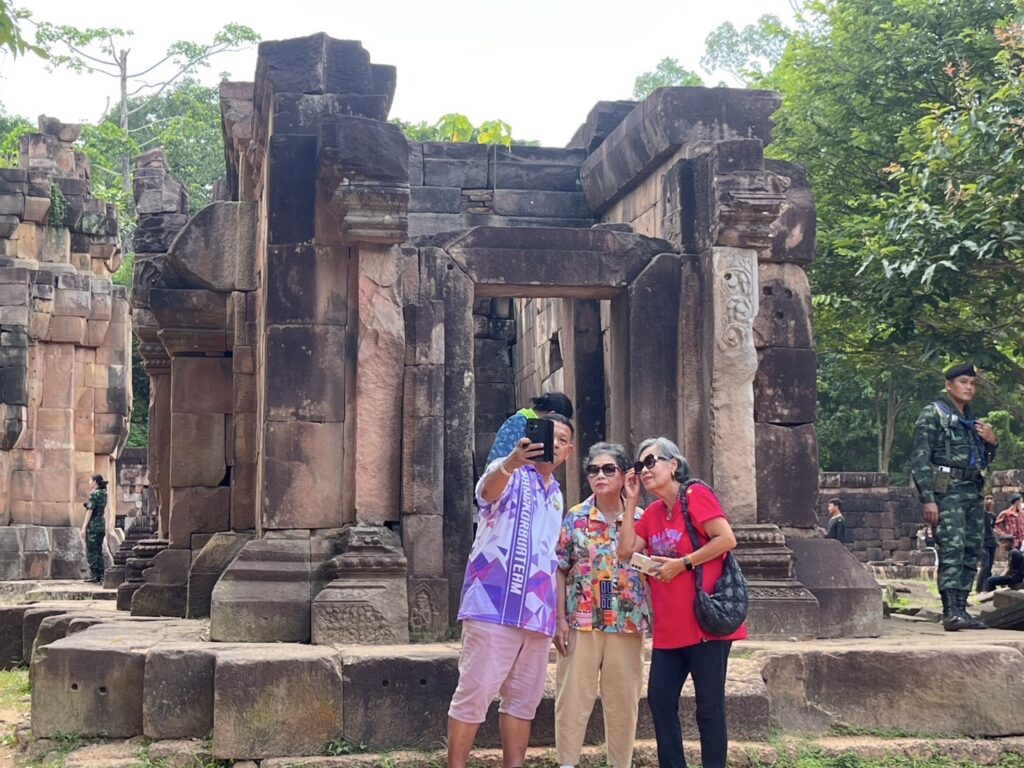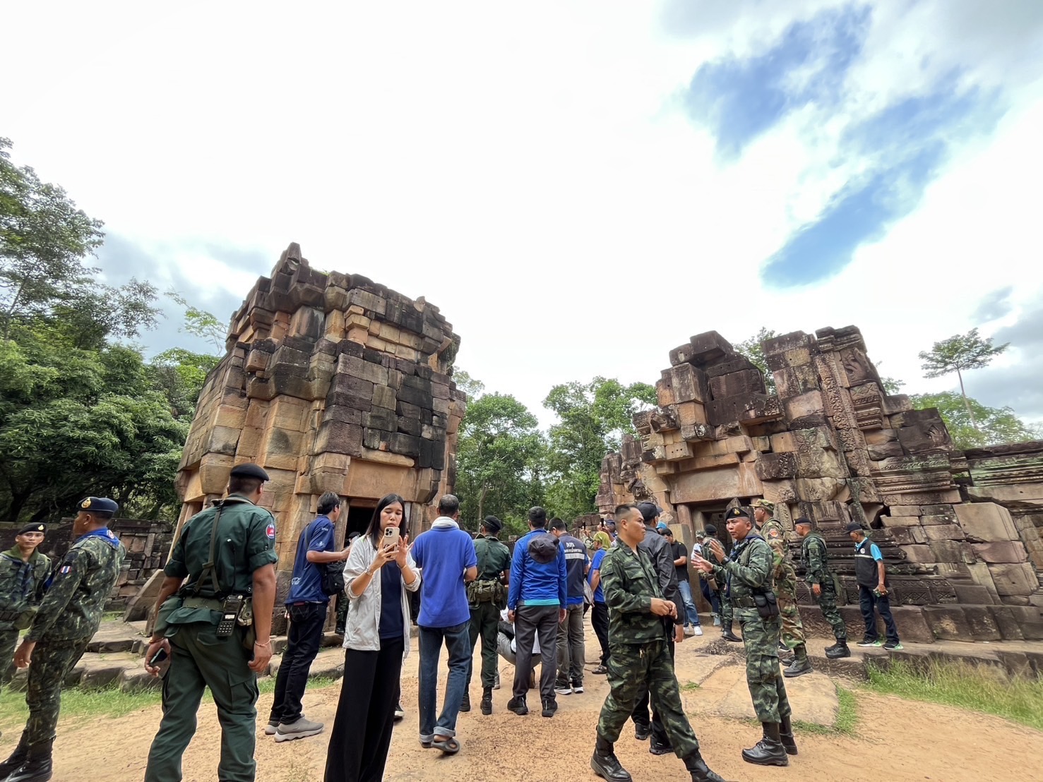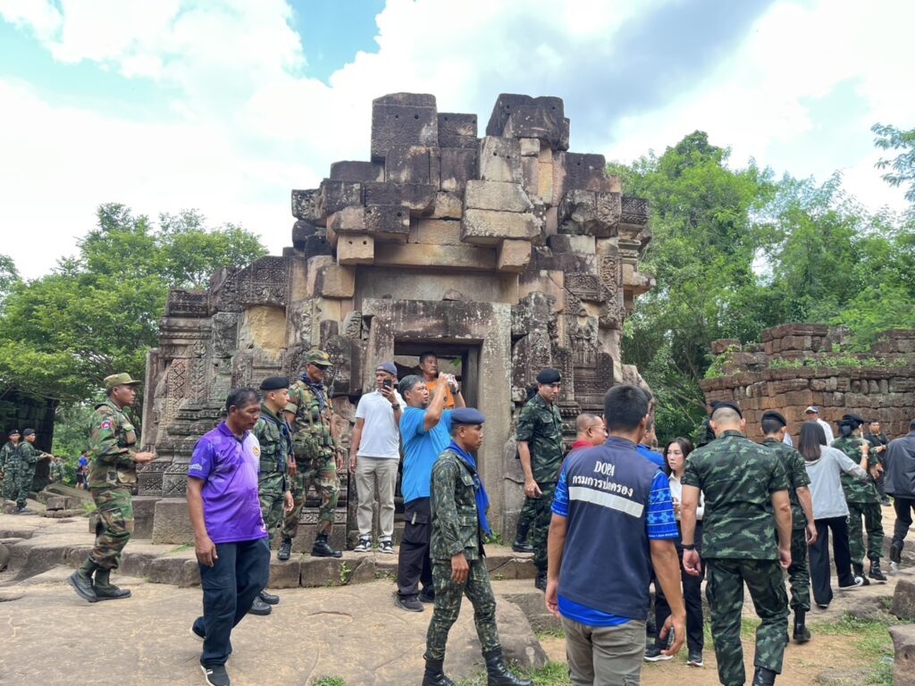 สุรินทร์ 8 ก.ค.- ทบ. พาสื่อทัวร์ปราสาทตาเมือนธม หวังเรียกนักท่องเที่ยวดูโบราณสถาน มองเป็นเรื่องดี หลังประชาชนทะลักเข้าชมปราสาท เผยไม่โต้กัมพูชากล่าวหาไทยรุกราน มุ่งยึดการสื่อสาร ไทย-กัมพูชา ไม่พัฒนาไปสู่ความตึงเครียด