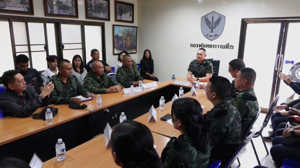 พล.ต.วินธัย สุวารี โฆษกกองทัพบก (ทบ.) ให้สัมภาษณ์ถึงกรณีการพาสื่อมวลชนลงพื้นที่ชายแดนไทย-กัมพูชา ที่ปราสาทตาเมือนธม ว่า พล.อ.พนา แคล้วปลอดทุกข์ ผู้บัญชาการทหารบก (ผบ.ทบ.) อยากให้พาสื่อมวลชนส่วนกลางมาลงพื้นที่ ทั้ง จ.สุรินทร์ จ.บุรีรัมย์ จ.อุบลราชธานี โดยอยากให้สื่อสัมผัสกับพื้นที่จริง 2 ส่วน โดยส่วนที่ 1 คือทหารที่ปฏิบัติหน้าที่อยู่ในพื้นที่ ส่วนที่ 2 เรื่องของพื้นที่ส่วนหลังในเรื่องความพร้อมต่าง ๆ ที่ทางทหารและฝ่ายปกครองได้เตรียมความพร้อมกันไว้ ซึ่งปราสาทตาเมือนธมเป็นจุดแรกที่เป็นจุดที่มาลงพื้นที่หลังฟังคำบรรยายของกองกำลังสุรนารี โดยส่วนหนึ่งที่เดินทางมาในวันนี้เพื่อเยี่ยมชมโบราณสถาณที่สำคัญ ตามจริงเราขึ้นทะเบียนกับกรมศิลปากรเมื่อปี พ.ศ. 2478 รวมถึงได้มีการมอบสิ่งของบำรุงขวัญและให้กำลังใจ เจ้าหน้าที่ทุกส่วนที่ปฏิบัติหน้าที่อยู่ในพื้นที่แห่งนี้
