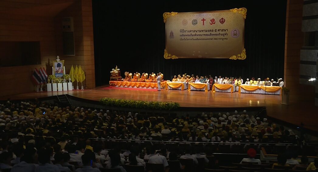นางสาวแพทองธาร ชินวัตร รัฐมนตรีว่าการกระทรวงวัฒนธรรม พร้อมด้วย องค์การทางศาสนาทั้ง 15 องค์การ จาก 5 ศาสนา ได้แก่ ศาสนาพุทธ ศาสนาอิสลาม ศาสนาคริสต์ ศาสนาพราหมณ์ – ฮินดู และศาสนาซิกข์ รวมทั้งหน่วยงานเครือข่าย มีผู้เข้าร่วมทั้งผู้ประกอบพิธีทางศาสนา ผู้นำทางศาสนา ศาสนิกชน เครือข่ายสถานศึกษา ผู้บริหารและเจ้าหน้าที่กระทรวงวัฒนธรรม รวมกว่า 1,000 คน ร่วมพิธีทางศาสนามหามงคล 5 ศาสนา เฉลิมพระเกียรติพระบาทสมเด็จพระเจ้าอยู่หัว เนื่องในโอกาสวันเฉลิมพระชนมพรรษา 28 กรกฎาคม จัดขึ้น ณ ศูนย์วัฒนธรรมแห่งประเทศไทย เพื่อถวายพระราชกุศลและถวายพระพรชัยมงคล แสดงความจงรักภักดีและสำนึก ในพระมหากรุณาธิคุณ ที่พระองค์ทรงมีต่อพสกนิกรทุกหมู่เหล่า