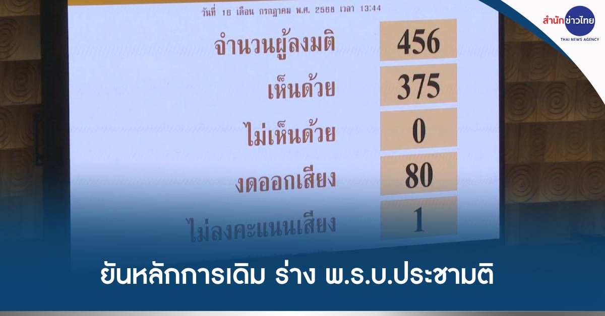 รัฐสภา 16 ก.ค.-สภายืนยันตามหลักการเดิม “ร่าง พ.ร.บ.ประชามติ” พร้อมส่งให้รัฐบาลดำเนินการ “จาตุรนต์” ชี้เป็นการปลดล็อกกติกาการออกเสียงประชามติให้เป็นเสียงข้างมากชั้นเดียว เพื่อเดินหน้าสู่การแก้ไขรัฐธรรมนูญต่อไป ขณะที่โฆษกภูมิใจไทย มองกฎหมายฉบับนี้ยังก้ำกึ่ง