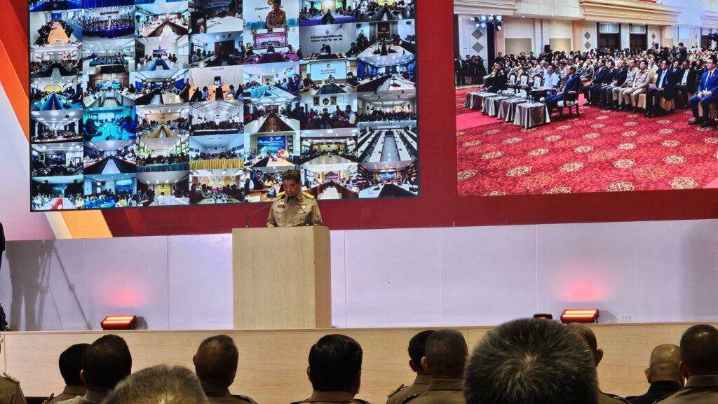 นายภูมิธรรม กล่าวว่า ปัจจุบันเราเผชิญกับอาชญากรรมจากภายนอกประเทศ ที่เล็ดรอดเข้าสู่ประเทศไทยตามแนวชายแดน ไม่ว่าจะเป็นการค้ามนุษย์ ขบวนการคอลเซ็นเตอร์ การค้าสิ่งของผิดกฎหมาย และที่สำคัญคือการลักลอบขนยาเสพติดเข้าประเทศ ยาเสพติดถือเป็นภัยร้ายแรงที่บ่อนทำลายประเทศมาอย่างยาวนาน แม้ว่าไทยจะไม่ได้เป็นต้นกำเนิดของยาเสพติด แต่เราก็ได้รับผลกระทบจากการลักลอบนำเข้ายาเสพติด จากประเทศเพื่อนบ้านบริเวณชายแดนภาคเหนือและภาคตะวันออกเฉียงเหนือ ซึ่งเส้นทางของยาเสพติดเหล่านี้ มีทั้งถูกนำเข้าเผยแพร่ระบาดในพื้นที่หมู่บ้านและชุมชนหรือถูกส่งต่อไปยังปลายทางประเทศที่ 3 แต่ไม่ว่า ปลายทางของยาเสพติดจะไปสิ้นสุดที่ใดก็ตาม ยาเสพติดสร้างปัญหาทำลายชีวิตของคนในหมู่บ้านและชุมชน ทำลายความสงบสุขและความปลอดภัยของชุมชน อีกทั้งทำลายโอกาสดีๆของคนรุ่นลูกรุ่นหลานต่อไปไม่รู้จบ