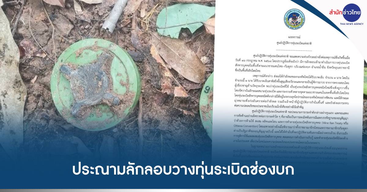 ศูนย์ปฏิบัติการทุ่นระเบิดแห่งชาติ ขอประณามการกระทำดังกล่าวอย่างรุนแรง และขอแสดงการคัดค้านอย่างเด็ดขาดต่อการกระทำใด ๆ ที่อาจถือเป็นการละเมิดพันธกรณีและบรรทัดฐานของอนุสัญญา ว่าด้วยการห้ามใช้ สะสม ผลิตและโอน และการทำลายทุ่นระเบิดสังหารบุคคล (Mine Ban Treaty หรือ Ottawa Convention) โดยเฉพาะอย่างยิ่งเมื่อพิจารณาว่าทั้งราชอาณาจักรไทยและราชอาณาจักรกัมพูชา ต่างเป็นรัฐภาคีของอนุสัญญาฉบับนี้ และได้ให้คำมั่นที่จะปฏิบัติตามพันธกรณีอย่างครบถ้วน อันรวมถึง การยุติการใช้และสะสมทุ่นระเบิดสังหารบุคคล ตลอดจนการดำเนินการเก็บกู้ และทำลายทุ่นระเบิดที่ยังตกค้างภายในประเทศ เพื่อประโยชน์และความปลอดภัยของประชาชนโดยรวมในระยะยาวในฐานะหน่วยงานหลักของประเทศไทยด้านปฏิบัติการทุ่นระเบิดเพื่อมนุษยธรรม ศูนย์ปฏิบัติการทุ่นระเบิดแห่งชาติ ขอเรียกร้องให้ราชอาณาจักรกัมพูชาแสดงความรับผิดชอบต่อเหตุการณ์ ที่เกิดขึ้นอย่างชัดเจนและเป็นรูปธรรม ดำเนินการสอบสวนข้อเท็จจริงอย่างรอบด้าน รวมถึงดำเนินมาตรการทางกฎหมายต่อผู้ที่มีส่วนเกี่ยวข้อง พร้อมทั้งดำเนินมาตรการอย่างเป็นรูปธรรมเพื่อป้องกันไม่ให้เกิดเหตุในลักษณะนี้อีกในอนาคตนอกจากนี้ ศูนย์ปฏิบัติการทุ่นระเบิดแห่งชาติ ขอเรียกร้องให้ฝ่ายกัมพูชาหยุดการขัดขวาง การปฏิบัติภารกิจเก็บกู้ทุ่นระเบิดของฝ่ายไทยตามแนวชายแดน และให้ความร่วมมืออย่างจริงจังในการดำเนินงานเก็บกู้ทุ่นระเบิดเพื่อมนุษยธรรม เพื่อสร้างความเชื่อมั่น ความปลอดภัย และความมั่นคงให้แก่ประชาชนของทั้งสองประเทศ ตลอดจนเป็นการแสดงออกถึงความรับผิดชอบร่วมกันในฐานะรัฐภาคี ของอนุสัญญาออตตาวา ซึ่งต่างมีพันธกิจในการสนับสนุนสันติภาพ ความมั่นคงของมนุษยชาติ และลดผลกระทบจากอาวุธที่ไร้ความจำแนกต่อพลเรือน.-313.-สำนักข่าวไทย