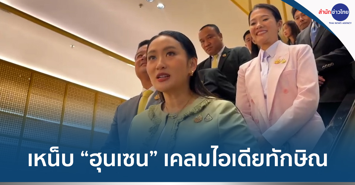เมื่อถามถึงกรณีที่สมเด็จฮุนเซน ประธานวุฒิสภากัมพูชา ออกมาระบุว่ามีส่วนร่วมในการคิดนโยบาย “ทักษิณคิดเพื่อไทยทำ” นางสาวแพทองธาร นิ่งคิดก่อนที่จะหันไปถามนายสรวงศ์ ว่า “เป็นของเขาได้อย่างไร” ผู้สื่อข่าวจึงบอกว่าเขาเคลมว่าเป็นแบบนั้น นางสาวแพทองธาร ยิ้ม นิ่งคิดก่อนที่นายสรวงศ์จะบอกว่า “สื่อไทยต้องเลิกเป็นกระบอกเสียงให้กัมพูชา” นางสาวแพทองธารจึงพูดต่อว่า “ก็เหมือนที่เขาบอกว่าปล่อยคลิป แล้วก็บอกว่าไม่ได้ปล่อย ใช่ไหม เหมือนกันนั่นแหละ” -สำนักข่าวไทย