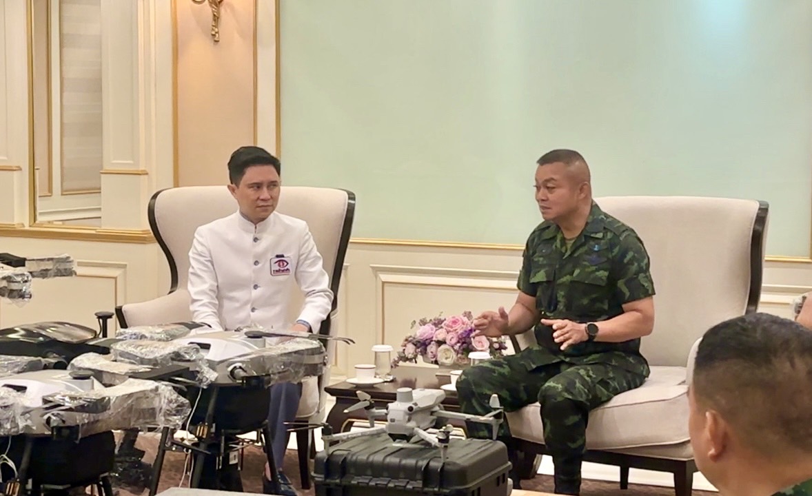 พล.ท.บุญสิน พาดกลาง แม่ทัพภาคที่ 2 รับมอบอากาศยานไร้คนขับ หรือ โดรน ณ ห้องรับรอง 211 กองทัพบก จาก อ.ปานเทพ พัวพงษ์พันธ์ ในฐานะประธานมูลนิธิยามเฝ้าแผ่นดิน พร้อมด้วย นาย นิติธร ล้ำเหลือ หรือทนายนกเขา และ นาย จตุพร พรหมพันธุ์ ซึ่งเป็นผู้แทนจากกลุ่มรวมพลังแผ่นดินปกป้องอธิปไตย มูลค่ากว่า 10 ล้านบาท เพื่อนำไปมอบให้กับทหารในพื้นที่ชายแดนไทย-กัมพูชา เพื่อเพิ่มขีดความสามารถในการลาดตระเวนของหน่วยทหาร ให้สามารถเฝ้าระวัง ตรวจสอบ และตอบโต้ภัยคุกคามต่อความมั่นคงของประเทศได้อย่างทันท่วงทีและมีประสิทธิภาพมากยิ่งขึ้น อีกทั้งยังเป็นการส่งเสริมความปลอดภัยของกำลังพล และสนับสนุนการปฏิบัติภารกิจในพื้นที่เสี่ยงอย่างยั่งยืน และในโอกาสต่อไปจะส่งมอบแอนตี้โดรน 1 ลำ โดยขอให้แม่ทัพภาคที่ 2 เป็นผู้เลือกเพื่อความเหมาะสมในพื้นที่