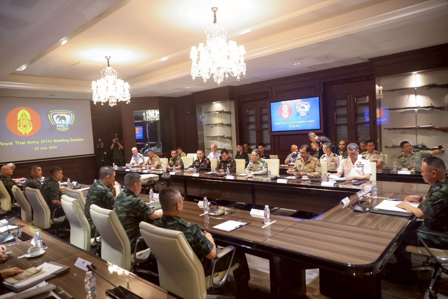 บรรดาทูตทหาร ทยอยเดินทางมายังห้อง ศรีสิทธิสงคราม ภายในกองทัพบก ตั้งแต่เวลา 13.20 น. อาทิทูตทหารจากเวียดนาม เมียนมา อินเดีย ญี่ปุ่น ฟิลิปปินส์ อังกฤษ บูรไน ออสเตเรีย สหรัฐอเมริกา อินโดนิเซีย จีน กัมพูชา เยอรมันนี แคนนาดา รัฐเซีย และอิสราเอล เป็นต้น