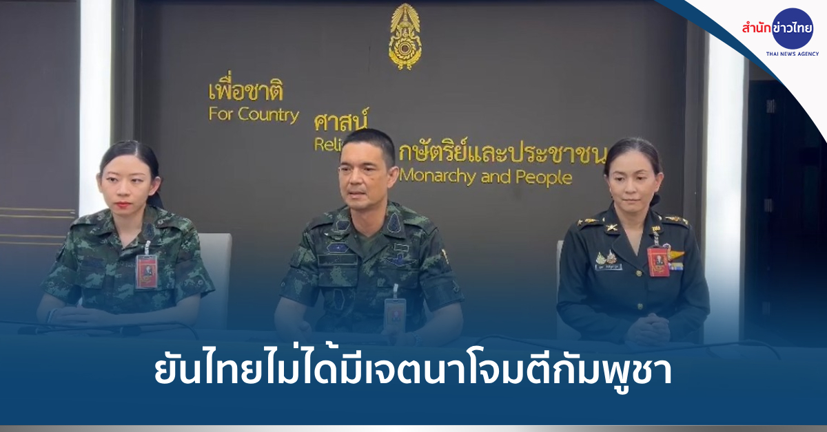 กองทัพบกยืนยันไทยไม่มีเจตนาหรือแรงจูงใจใดๆ ที่จะต้องไปโจมตีกัมพูชาเลย ไม่ได้ประโยชน์อะไรจากเรื่องนี้ และไม่มีเหตุผลที่เราจะทำเช่นนั้น ถ้าไม่เป็นไปด้วยความจำเป็นจริงตามแนวทางที่ถูกบีบบังคับอันเนื่องมาจากสถานการณ์ที่เกิดขึ้น