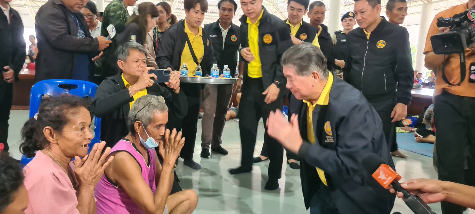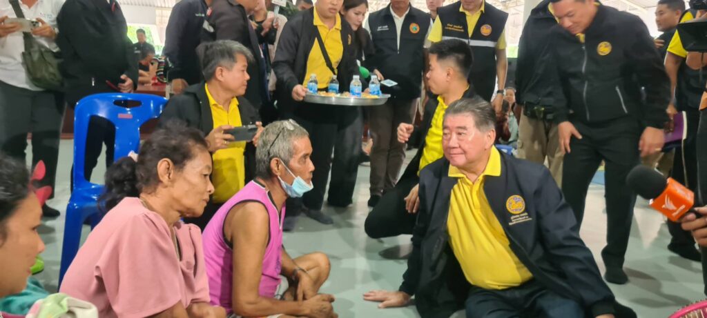นายภูมิธรรม และคณะ ได้มอบสิ่งของเครื่องอุปโภคบริโภคให้กับประชาชนในศูนย์พักพิง และนั่งพื้นกินข้าวพูดคุยกับประชาชนในศูนย์พักพิง อย่างเป็นกันเอง เพื่อสร้างความอุ่นใจ คลายความกังวลให้กับประชาชน
