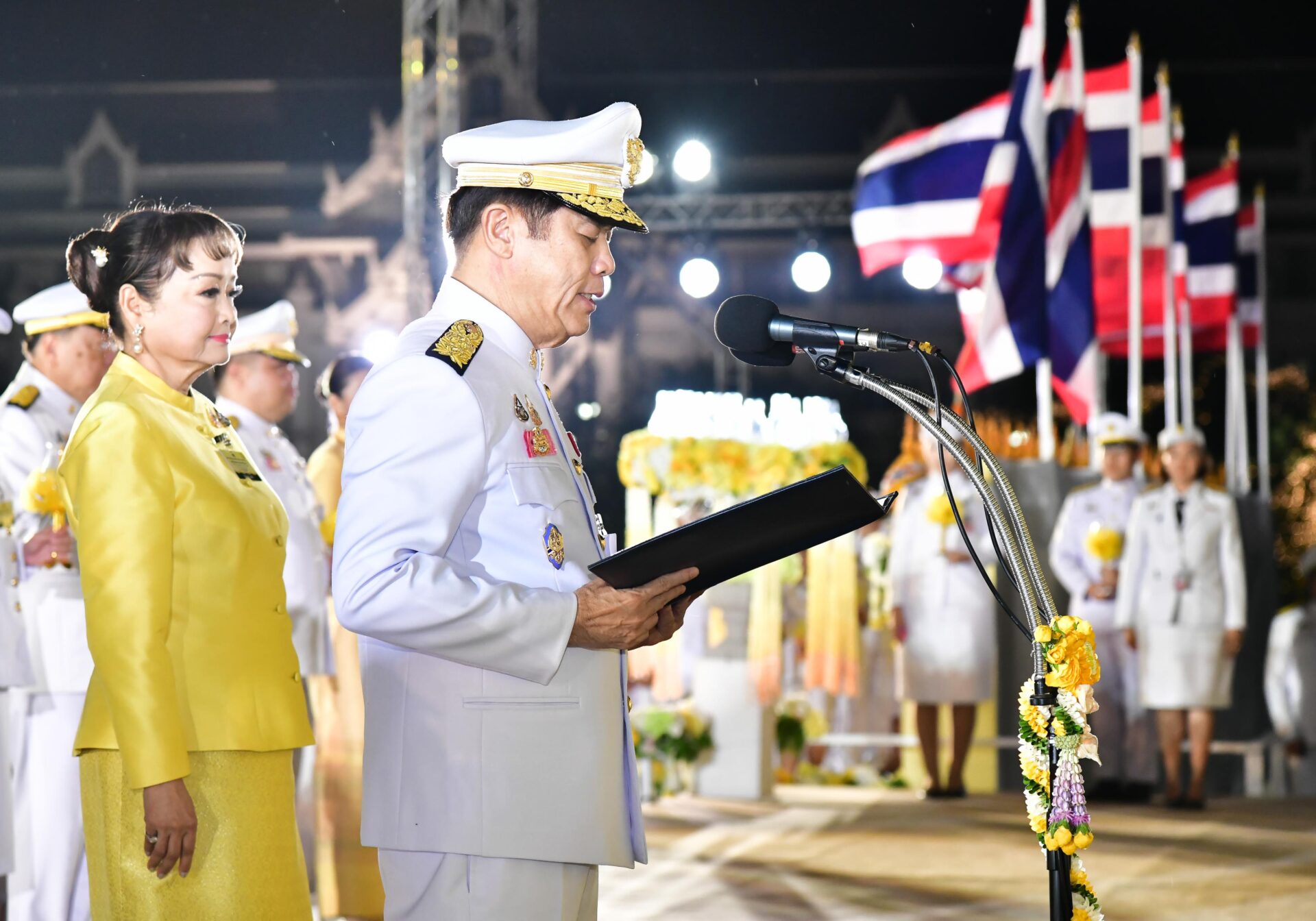 จากนั้น รองนายกรัฐมนตรี กล่าวกราบบังคมทูลถวายพระพรชัยมงคล และกล่าวนำถวายพระพรชัยมงคลหน้าพระบรมฉายาลักษณ์ฯ ความว่า