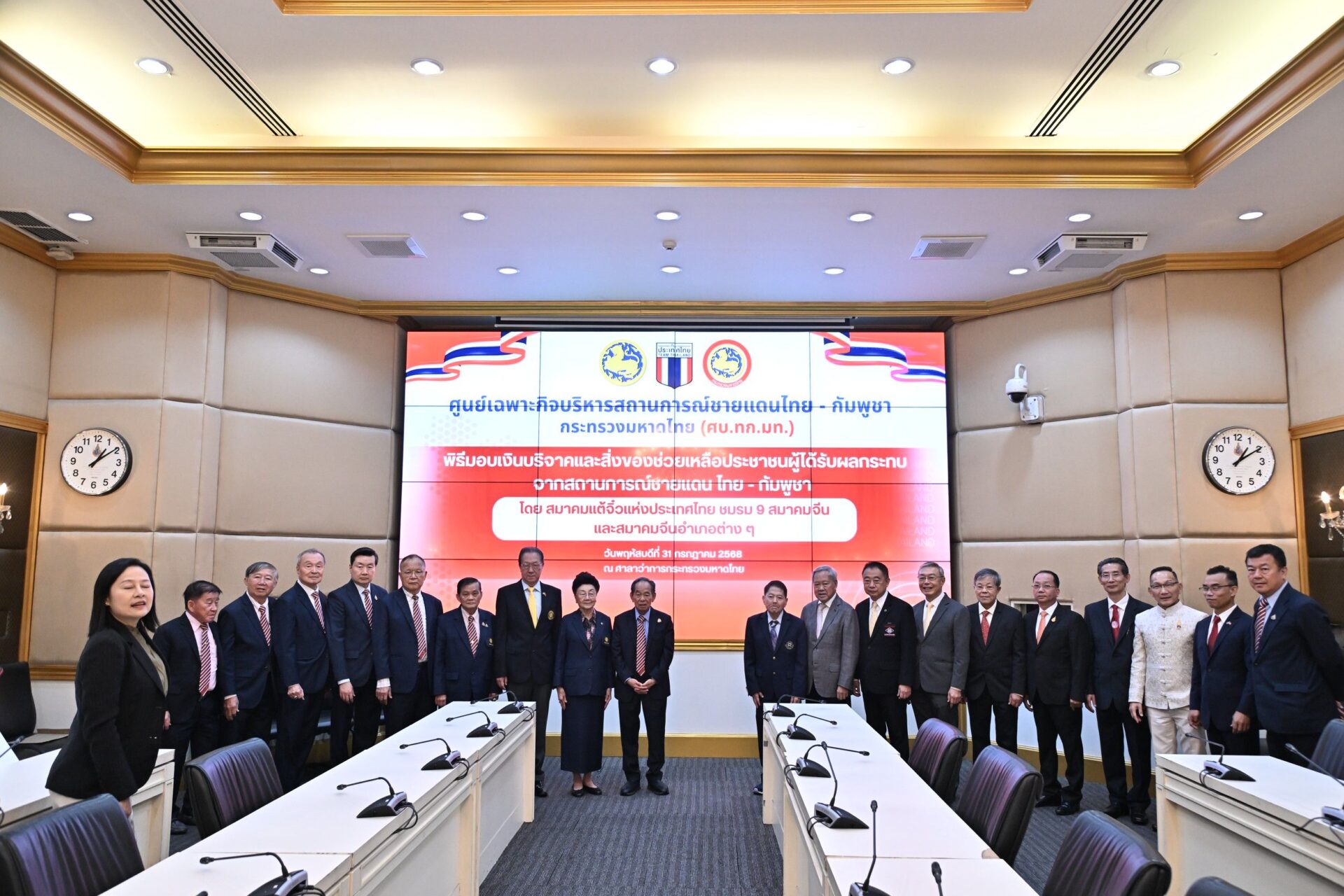 ก.มหาดไทย 31 ก.ค. – “ภูมิธรรม” รับมอบเงินบริจาคสนับสนุนภารกิจและช่วยเหลือประชาชนชายแดนไทย-กัมพูชา จากสมาคมแต้จิ๋วแห่งประเทศไทย ชมรม-สมาคมจีน รวมกว่า 2.49 ล้านบาท