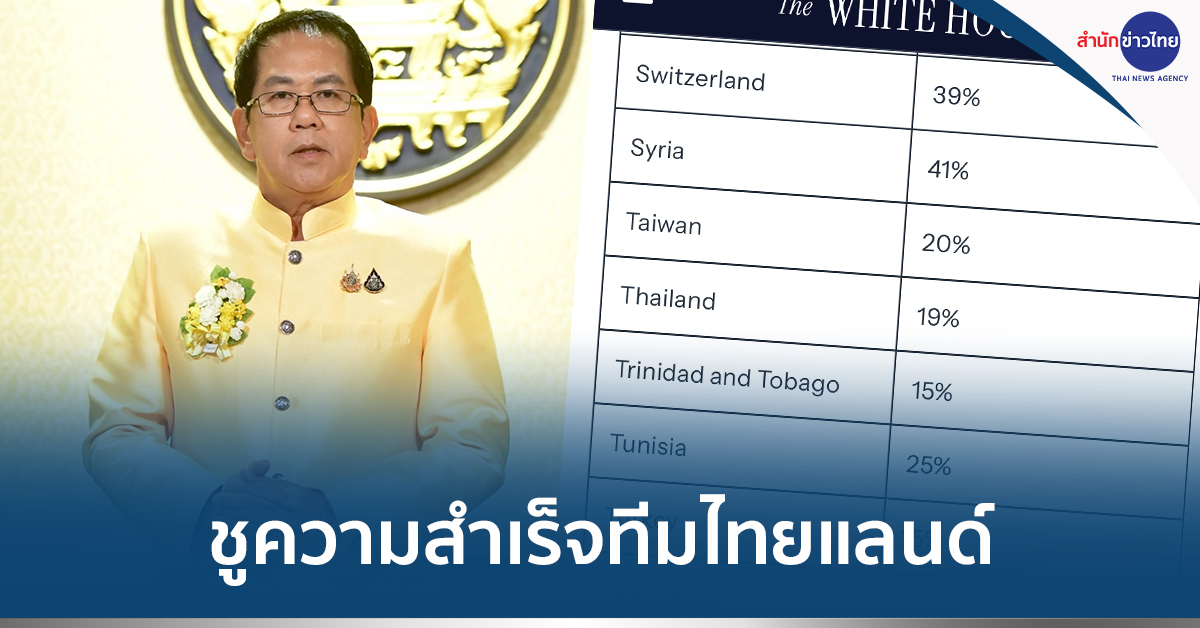ทำเนียบ 1 ส.ค.-โฆษกรัฐบาล เผย ปิดดีลภาษีนำเข้าสหรัฐสำเร็จที่ 19% เกาะกลุ่มระดับใกล้เคียงกับประเทศในภูมิภาค ชู เป็นอีกหนึ่งความสำเร็จสำคัญของทีมไทยแลนด์ ในแนวทาง Win-Win
