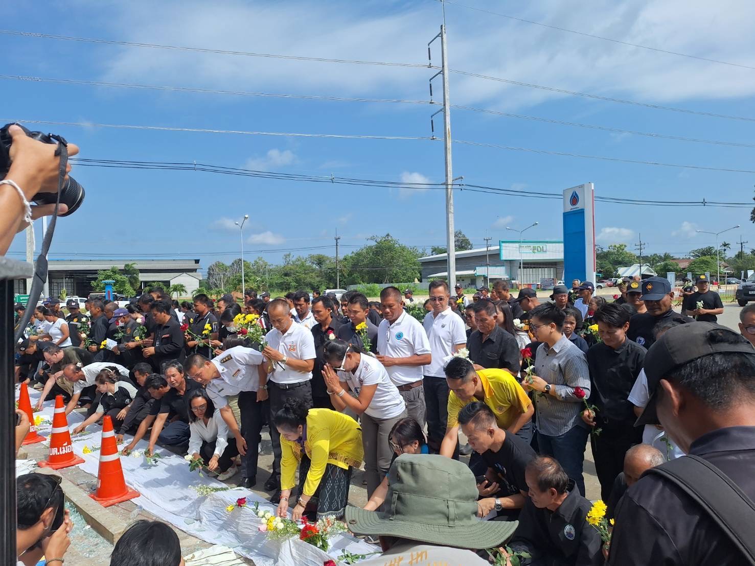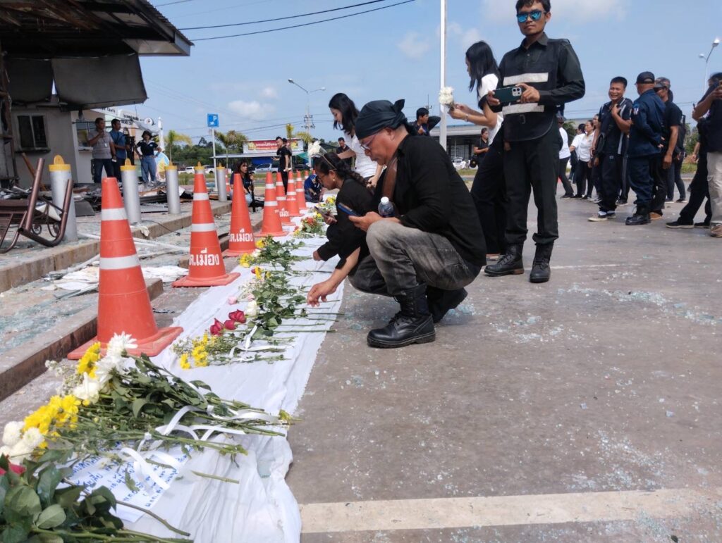 ตั้งแต่เวลา 09.30 น. ปั๊มน้ำมัน ปตท. บ้านผือ อำเภอกันทรลักษ์ จังหวัดศรีสะเกษ นางสาวภคนันท์ ศิลาอาสน์ รองเลขาธิการนายกรัฐมนตรี ฝ่ายบริหาร จัดกิจกรรมให้ร่วมวางดอกไม้แสดงความอาลัย และร่วมส่งดวงวิญญาณของผู้เสียชีวิต โดยมีประชาชนชาวอำเภอกันทรลักษ์ สื่อมวลชนไทยและสื่อต่างประเทศ สื่อท้องถิ่น รวมทั้งประชาชนที่ทราบข่าว ได้เดินทางมาร่วมวางดอกไม้ แสดงความอาลัยเป็นจำนวนมาก และหลังจากที่มีการเผยแพร่ในโลกโซเชียลมีเดีย เรื่องวางดอกไม้ส่งดวงวิญญาณ ผู้เสียชีวิตในเหตุการณ์ถูกกัมพูชาถล่มร้านสะดวกซื้อ ขณะนี้มีประชาชนจำนวนมากหลั่งไหลมาวางดอกไม้เพื่อร่วมส่งดวงวิญญาณผู้เสียชีวิตในเหตุการณ์