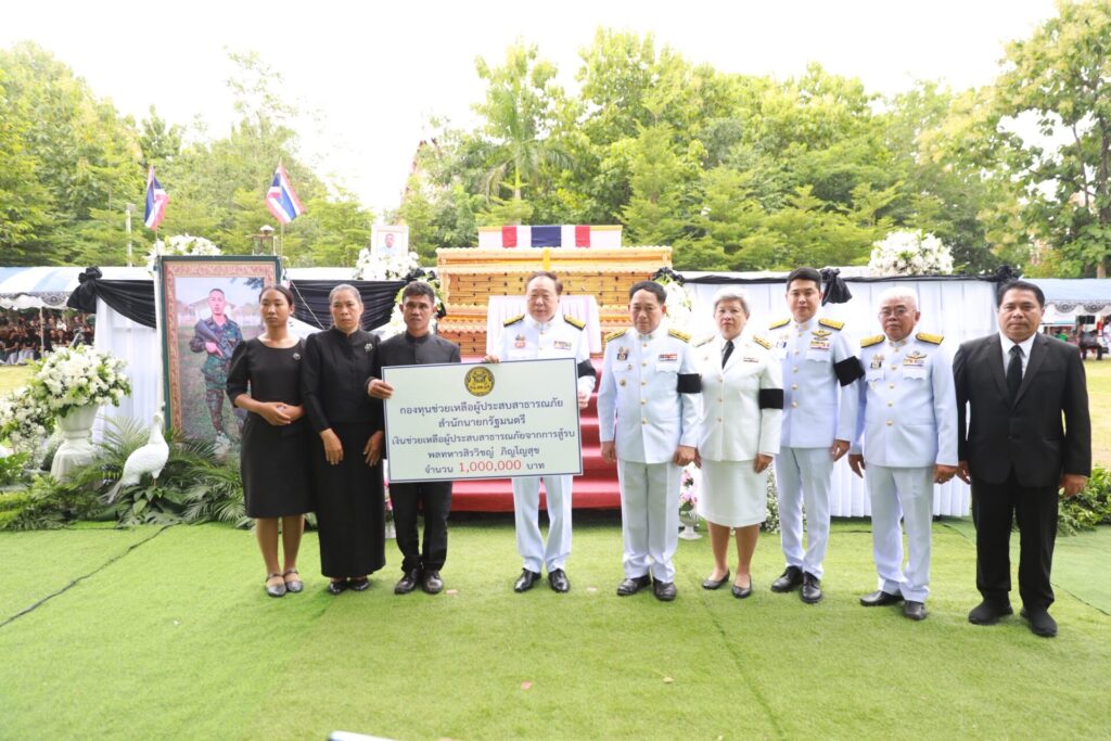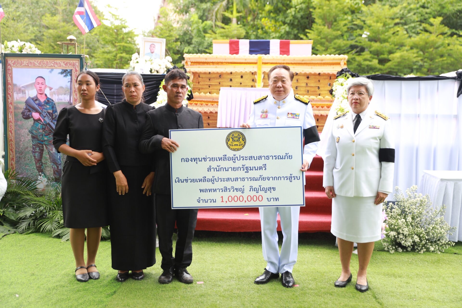 นายสุชาติ กล่าวให้กำลังใจครอบครัว และขอบคุณความเสียสละของพลทหารสิรวิชญ์ พร้อมกันนี้ ยังเป็นผู้แทนรัฐบาลมอบเงินกองทุนช่วยเหลือผู้ประสบสาธารณภัย สำนักนายกรัฐมนตรี ซึ่งเป็นเงินช่วยเหลือผู้ประสบสาธารณภัยจากการสู้รบเหตุปะทะชายแดนไทย-กัมพูชา ให้แก่ครอบครัวพลทหารสิรวิชญ์ ภิญโญสุข จำนวน 1,000,000 บาท ด้วย