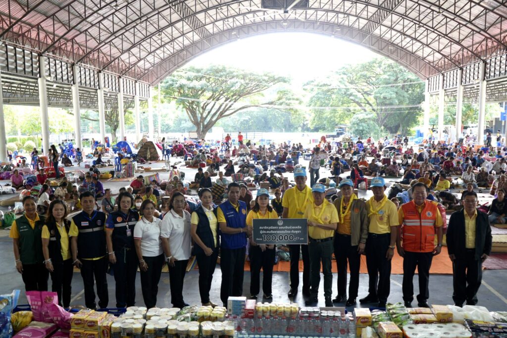 นอกจากนี้ คณะสมาชิกวุฒิสภายังได้ร่วมกับเจ้าหน้าที่และอาสาสมัครจัดเลี้ยงอาหารกลางวันแก่ประชาชนและเจ้าหน้าที่ผู้ปฏิบัติงานทุกคนในศูนย์พักพิงฯ เพื่อเป็นขวัญและกำลังใจ