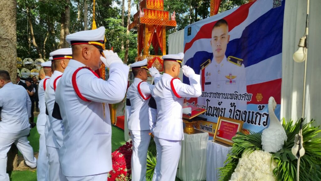 วัดไชยธราวาส จ.อุบลราชธานี 3 ส.ค.-“ธีรรัตน์” เป็นผู้แทน ครม. ร่วมพิธีพระราชทานเพลิงศพ “จ.ส.อ. อโณทัย ป้องแก้” ถึงแก่กรรมระหว่างปฏิบัติหน้าที่ปกป้องอธิปไตยชายแดนไทย-กัมพูชา พร้อมมอบเงินกองทุนช่วยเหลือผู้ประสบสาธารณภัย สำนักนายกรัฐมนตรี จำนวน 1,000,000 บาท