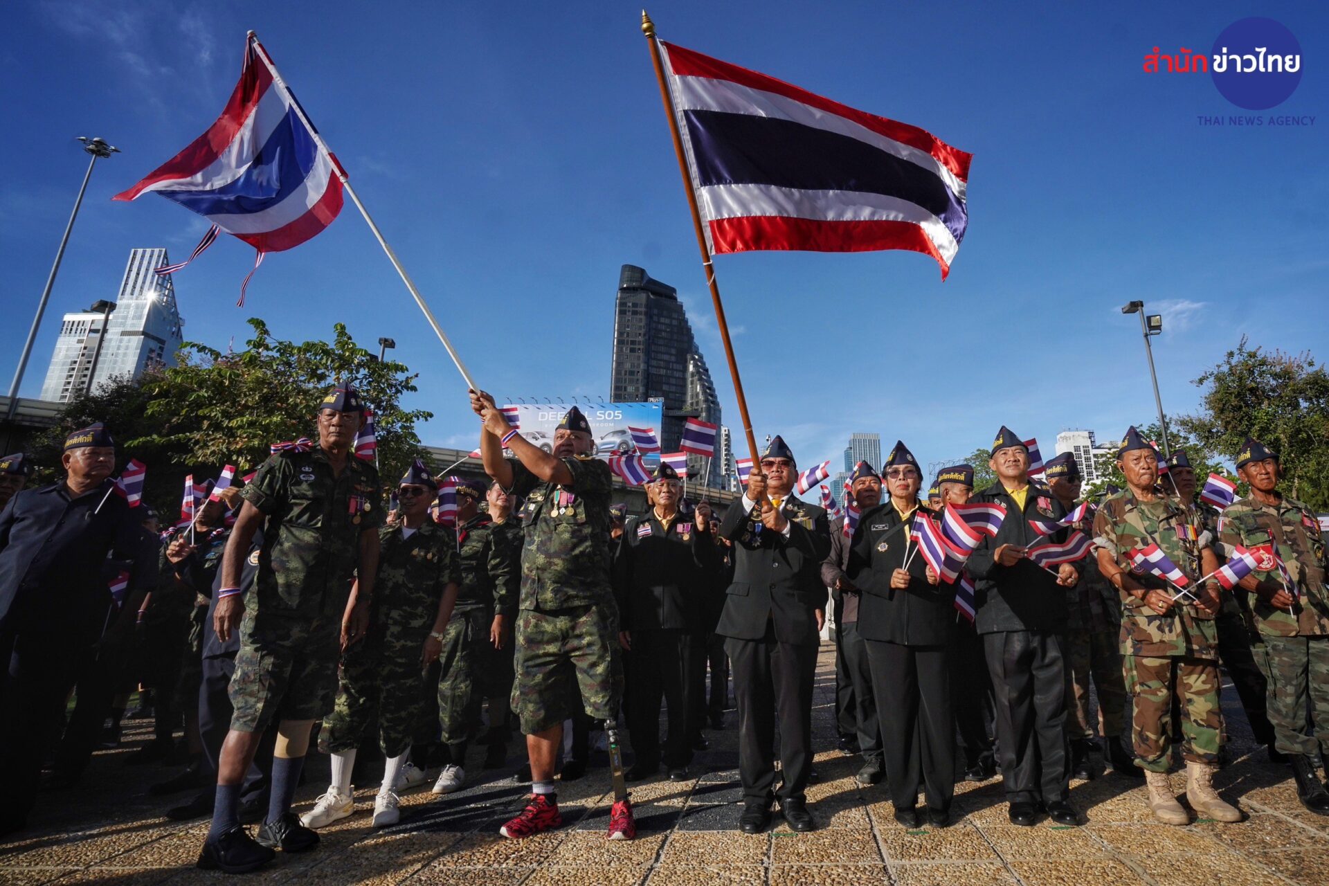 กทม. 4 ส.ค.-ทหารผ่านศึก พร้อมใจ “รวมพลังปกป้องแผ่นดิน” โบกธงไทยร้องเพลงชาติ ส่งใจถึงแนวหน้า สดุดีนักรบผู้กล้า ปกป้องเอกราชและรักษาอธิปไตยของชาติ