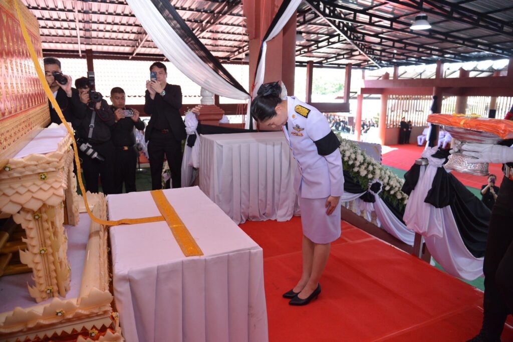 ทั้งนี้ พิธีพระราชทานเพลิงศพจัดขึ้นอย่างสมเกียรติ ณ วัดเนรมิตวิปัสสนา อำเภอด่านซ้าย จังหวัดเลย โดยมีนางสาวจิราพร สินธุไพร รัฐมนตรีประจำสำนักนายกรัฐมนตรี เป็นผู้แทนคณะรัฐมนตรี พร้อมด้วยหัวหน้าส่วนราชการ ทหาร ตำรวจ หน่วยงานภาครัฐ และประชาชน ร่วมพิธีพระราชทานเพลิงศพด้วย
