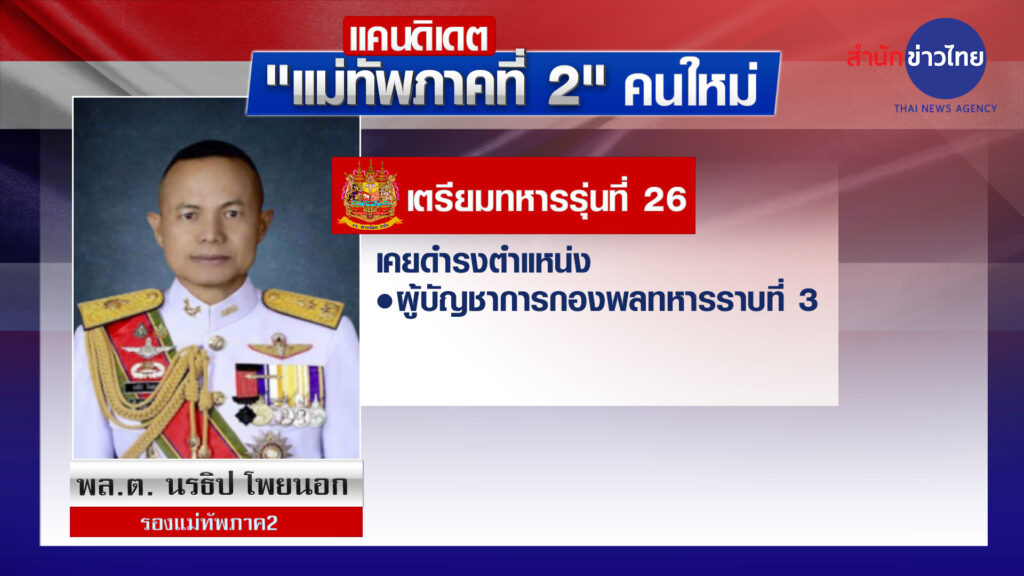พล.ต.นรธิป โพยนอก รองแม่ทัพภาค 2 เตรียมทหารรุ่นที่ 26 รุ่นเดียวกับ ผบ.ทบ.ปู และ แม่ทัพกุ้ง เช่นเดียวกับ พล.ต.วีระยุทธ รักศิลป์ แต่ลำดับอาวุโสน้อยกว่า พล.ต.วีระยุทธ โดย พล.ต.นรธิป ขยับจากขึ้นผู้บัญชาการกองพลทหารราบที่ 3 เป็นรองแม่ทัพภาค 2 เมื่อปี 2567 ที่ผ่านมา จึงเป็นรองแม่ทัพภาค 2 อาวุโสลำดับที่ 2