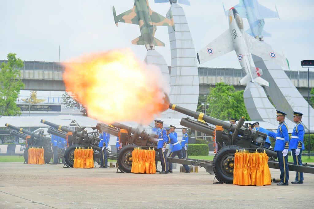 กองทัพอากาศ โดย กรมทหารต่อสู้อากาศยาน หน่วยบัญชาการอากาศโยธิน ทำการยิงสลุตหลวงเฉลิมพระเกียรติ 21 นัด เนื่องในโอกาสวันเฉลิมพระชนมพรรษา สมเด็จพระนางเจ้าสิริกิติ์ พระบรมราชินีนาถ พระบรมราชชนนีพันปีหลวง 12 สิงหาคม 2568 ณ อุทยานการบินกองทัพอากาศ
