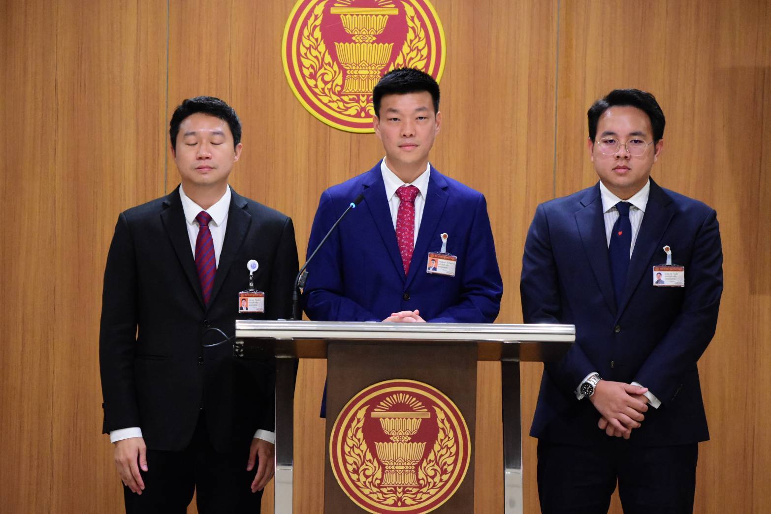 นายณัฐพงษ์ เรืองปัญญาวุฒิ ผู้นำฝ่ายค้านในสภาผู้แทนราษฎร และหัวหน้าพรรคประชาชน พร้อมด้วยนายวรภพ วิริยะโรจน์ สส.บัญชีรายชื่อ พรรคประชาชน และนายศุภโชติ ไชยสัจ สส.บัญชีรายชื่อพรรคประชาชน ร่วมแถลงข่าวการเดินหน้าปกป้องผลประโยชน์ประชาชนจากทุนพลังงานผูกขาด