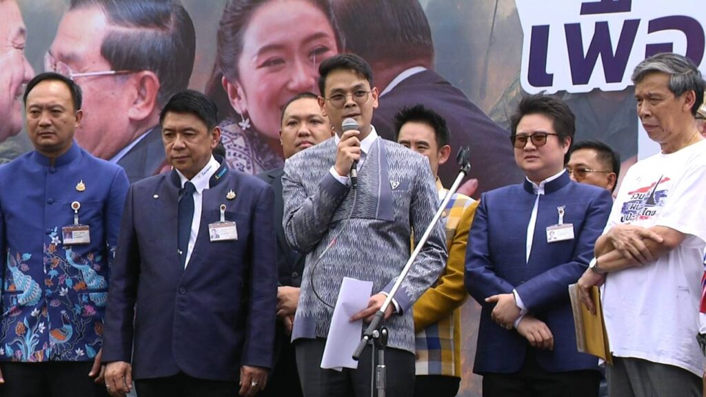 รัฐสภา 21 ส.ค.- คณะรวมพลังแผ่นดินปกป้องอธิปไตย ยื่นหนังสือเรียกร้องสภา พิจารณายกเลิก MOU ปี 2543 และ 2544 ชี้เป็นต้นตอข้อพิพาทเขตแดนไทย–กัมพูชา ด้านรองประธานสภา ย้ำ เป็นอำนาจสมาชิก พร้อมยินดีอำนวยความสะดวก ขณะที่เลขาพรรคภูมิใจไทย ชื่นชมความสามัคคีของคนไทยจากเหตุชายแดน ส่วนตัวแทนพรรคประชาชนถูกโห่ไล่ แต่ยังใจสู้ ย้ำจะพิสูจน์ความจริงใจด้วยการทำงาน