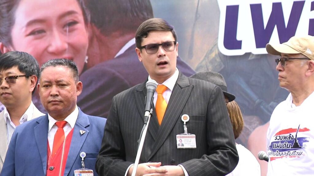 จากนั้น นายรังสิมันต์ โรม หัวหน้าพรรคประชาชนได้ขึ้นเวที เพื่อรับหนังสือ กล่าวว่า ตนในฐานะที่เป็นรองหัวหน้าพรรคประชาชน และ ตัวแทนพรรค เรามีความปรารถนาดีและอยากเห็นประเทศไทยทำทุกวิถีทางในการปกป้องผลประโยชน์ของประเทศชาติ