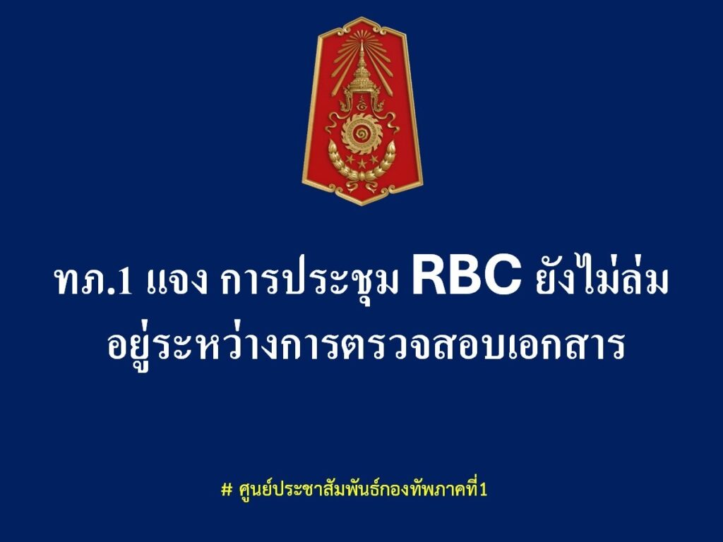 ก่อนที่จะมีความชัดเจนในเวลา 18.00 น. เมื่อเพจเฟซบุ๊กกองทัพภาคที่ 1 ขึ้นข้อความยืนยันว่าการประชุม RBC ยังไม่ล่ม และมีรายงาน ข่าวว่าขณะนี้กำลังอยู่ระหว่างตรวจสอบเอกสาร ทางฝั่งกัมพูชาอาจเดินทางมาสถานที่ประชุมแห่งนี้ในช่วงเวลาประมาณ 20.00 น.